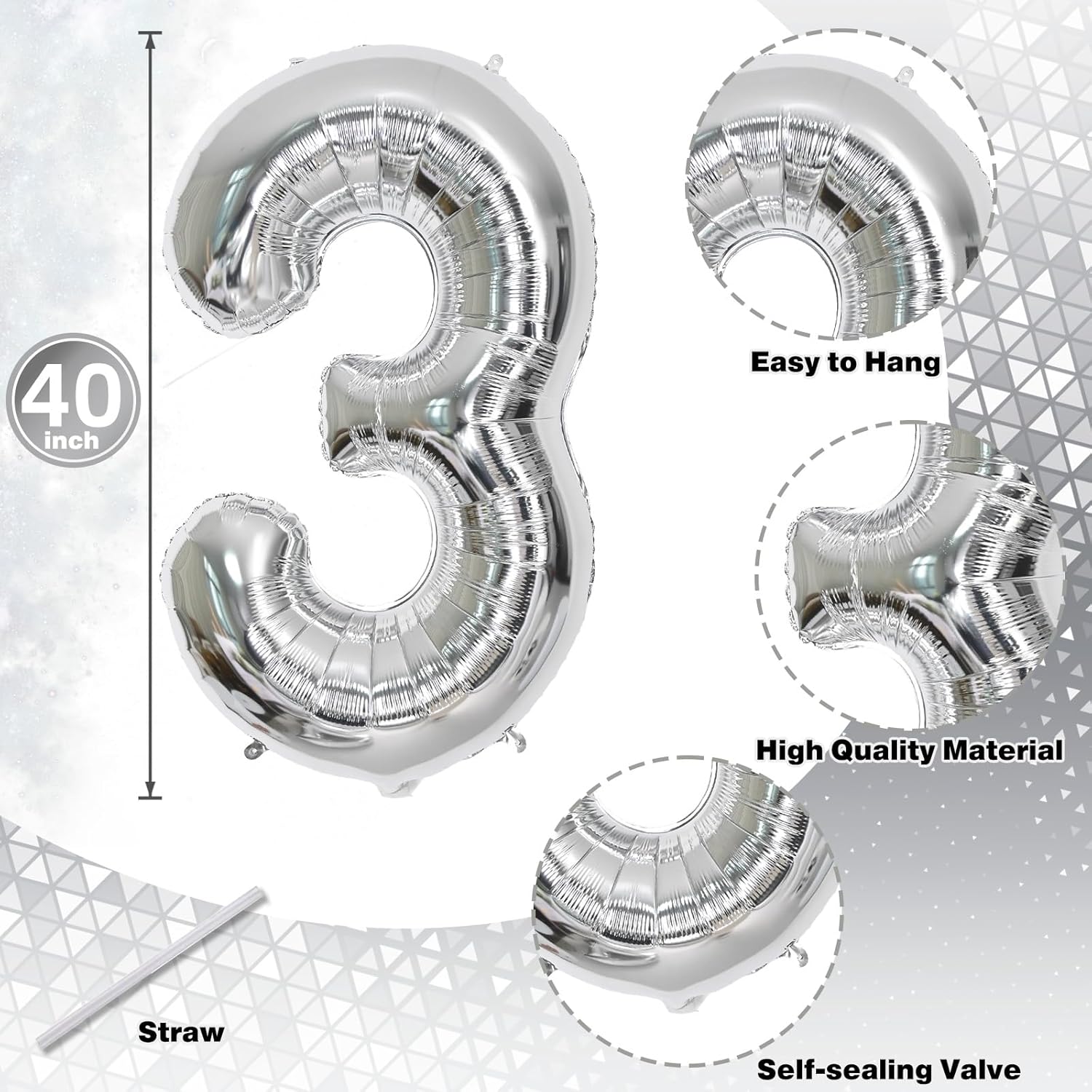 • ๐Ÿ’“ Silver Number 30 Balloon: Our package included 40 inch number 3 & 0 balloon and 1pcs straw. Simply inflate the balloon using the straw, and you're ready to party! Silver number foil balloons are the best for women men birthday party decoration.