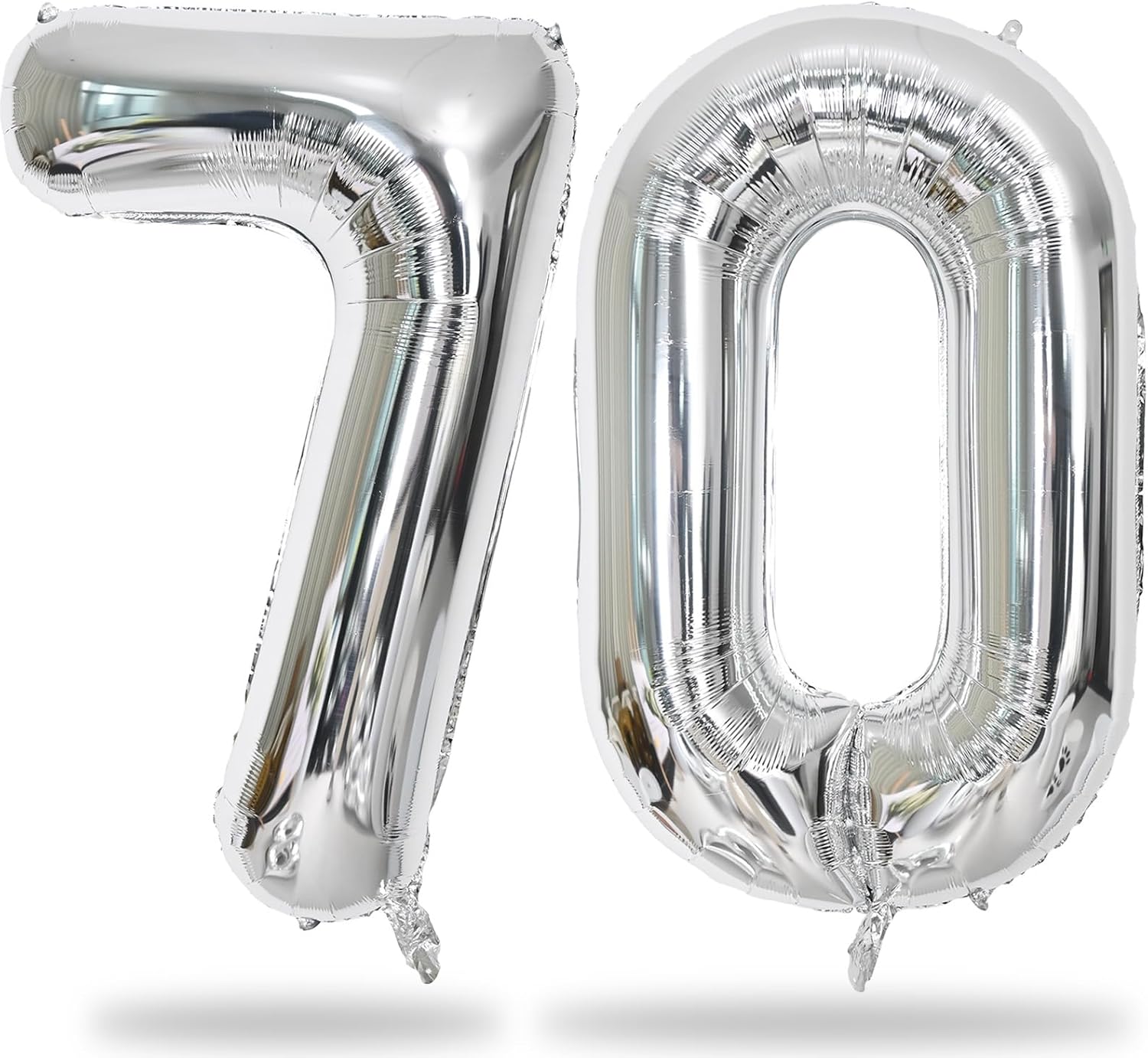 • ๐Ÿ’“ Silver Number 70 Balloon: Our package included 40 inch number 7 & 0 balloon and 1pcs straw. Simply inflate the balloon using the straw, and you're ready to party! Silver number foil balloons are the best for women men birthday party decoration.