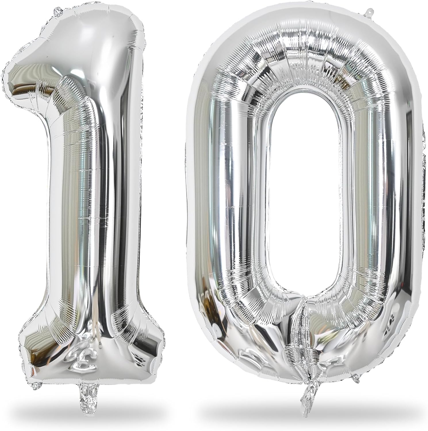 • ๐Ÿ’“ Silver Number 10 Balloon: Our package included 40 inch number 1 & 0 balloon and 1pcs straw. Simply inflate the balloon using the straw, and you're ready to party! Silver number foil balloons are the best for girls or boys birthday party decoration.