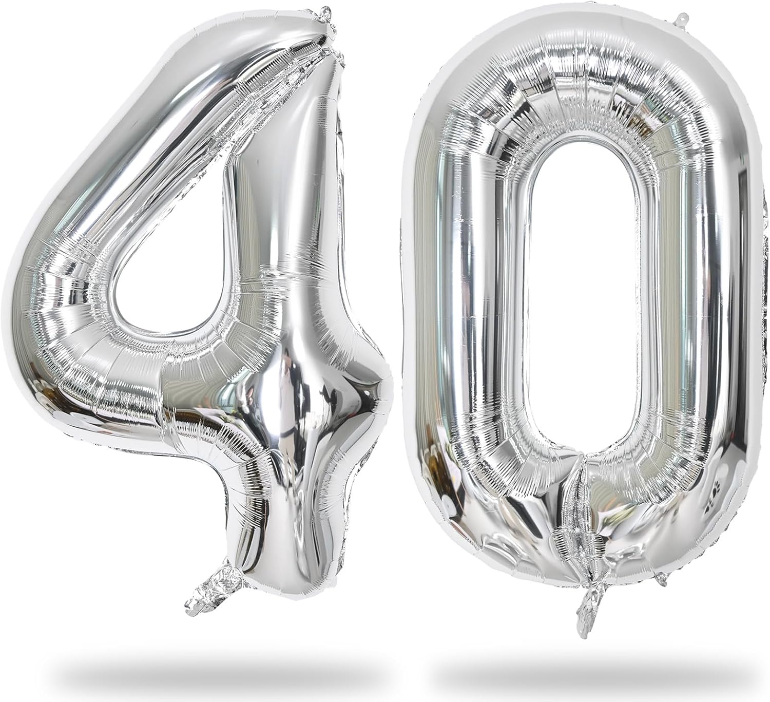 • ๐Ÿ’“ Silver Number 40 Balloon: Our package included 40 inch number 4 & 0 balloon and 1pcs straw. Simply inflate the balloon using the straw, and you're ready to party! Silver number foil balloons are the best for women men birthday party decoration.