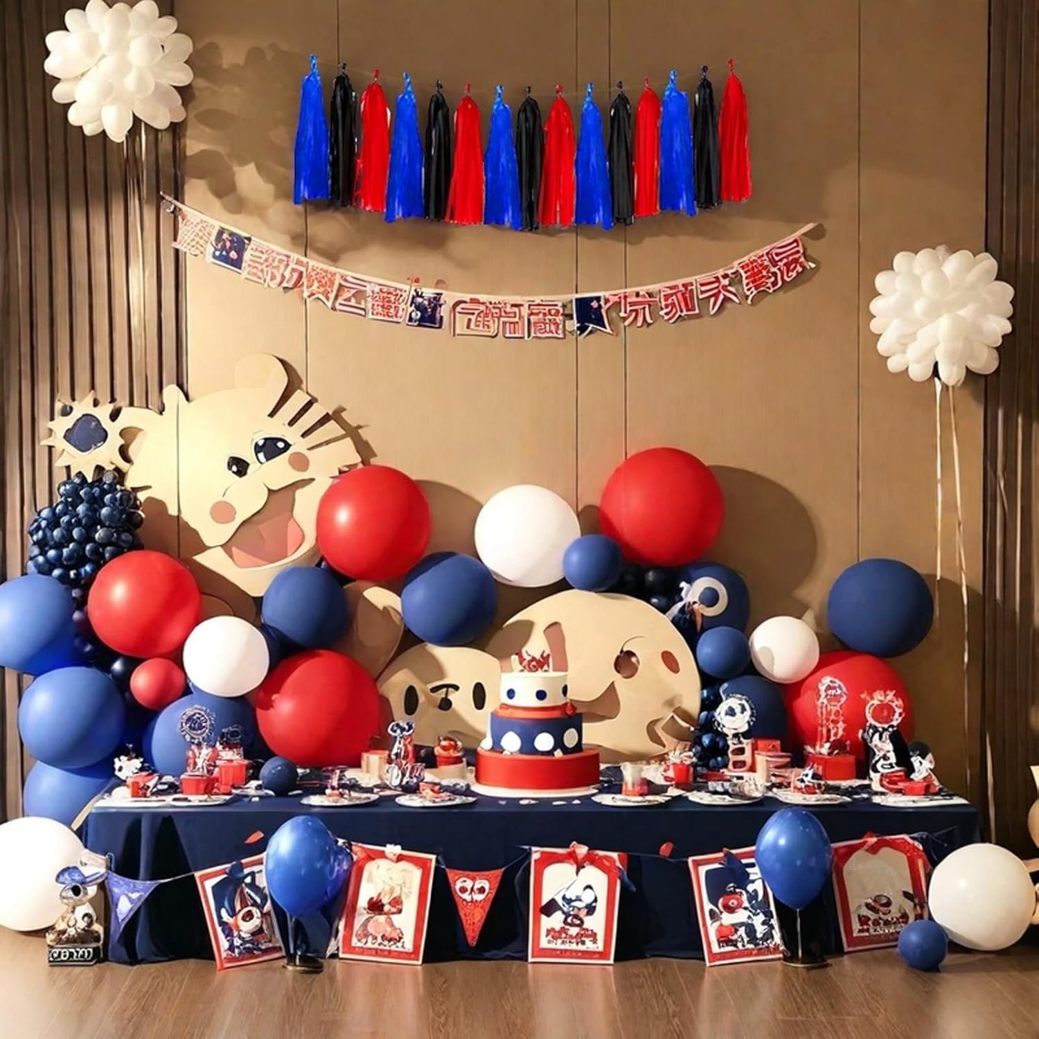 Red Blue and Black Tassel Garland Banner Paper Tassels for Birthday Party Decorations,Pack of 15