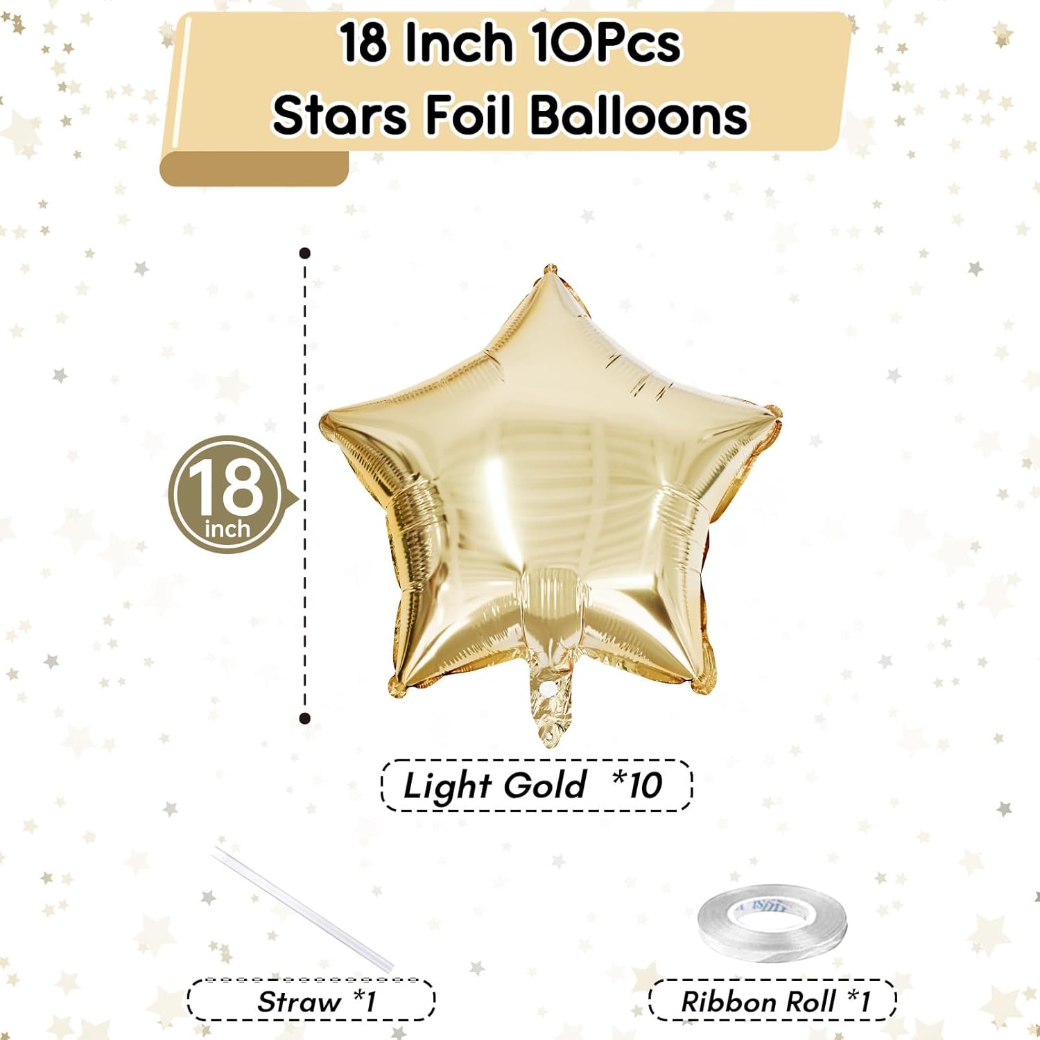 Gold Star Foil Balloons, 18 Inch Light Gold Stars Shape Foil Helium Balloons, 10 Pcs Large Light Yellow Pentagram Balloon Party Decorations for Birthday Wedding Baby Shower Graduation Supplies