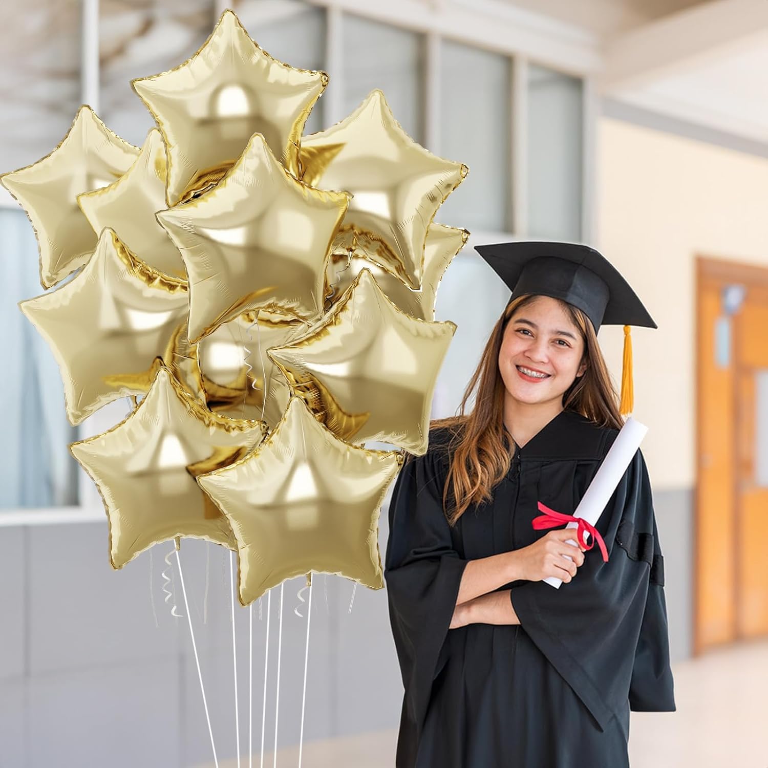 • Gold Party Decorations: This 10Pcs gold star balloons kit includes 18'' star foil balloons, with gold star balloons and ribbon