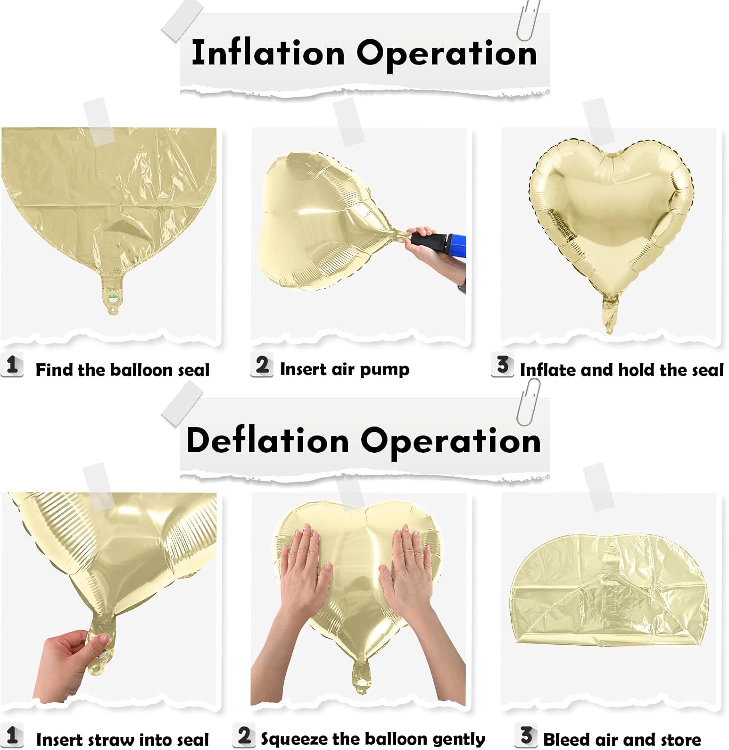 • Tips: The balloons is reusable balloons, only one plastic straw is needed for deflation. Balloons should always be used under adult supervision to ensure children's safety.