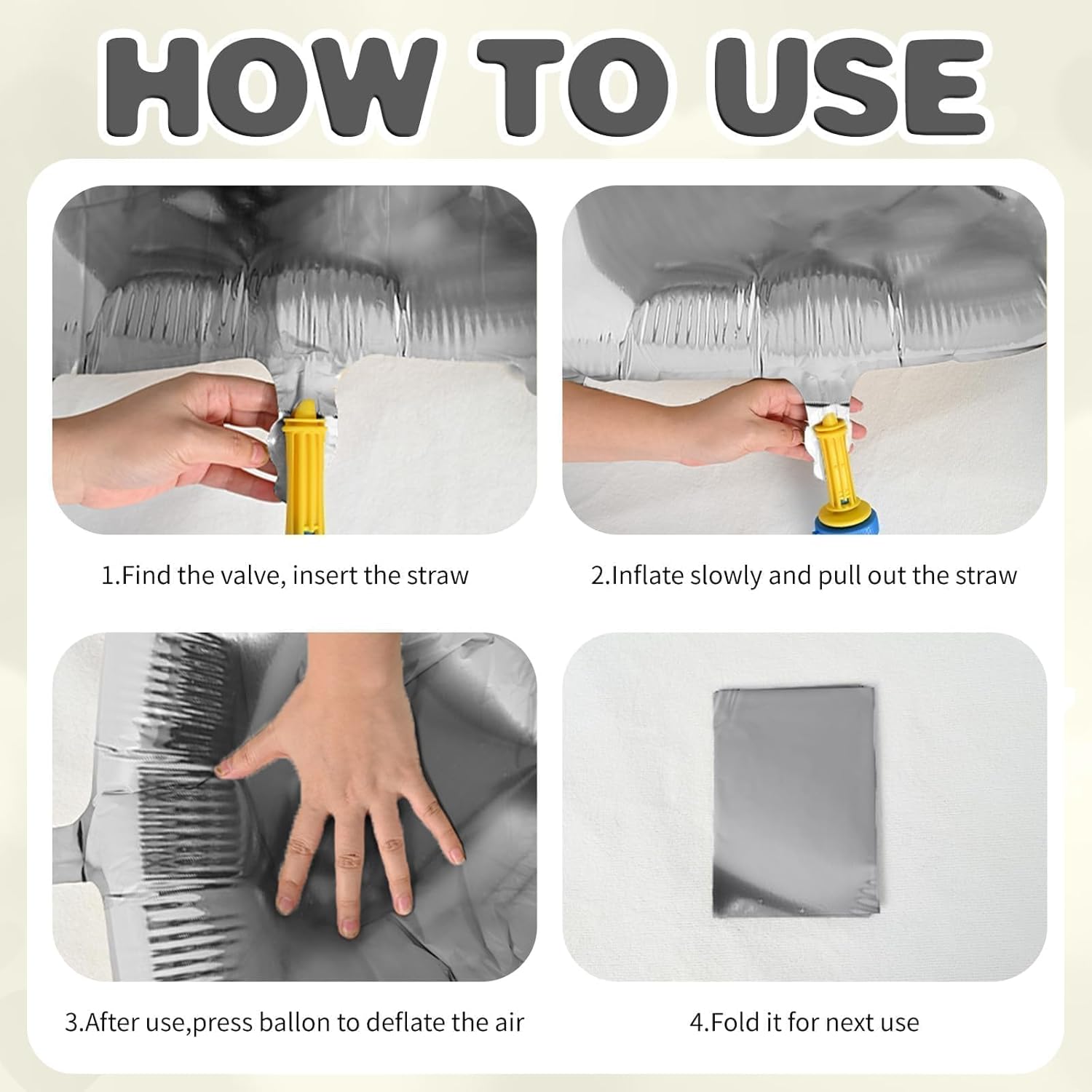• Easy To Use:These metallic silver heart foil balloons are suitable for helium or air. Easy to inflate using the a straw or an air handheld pump. This heart foil balloon adopts self-sealing design, you only need to press the inflation port to seal it after finishing inflate. The balloons are reusable and can be folded up for next use after being deflated with a straw.