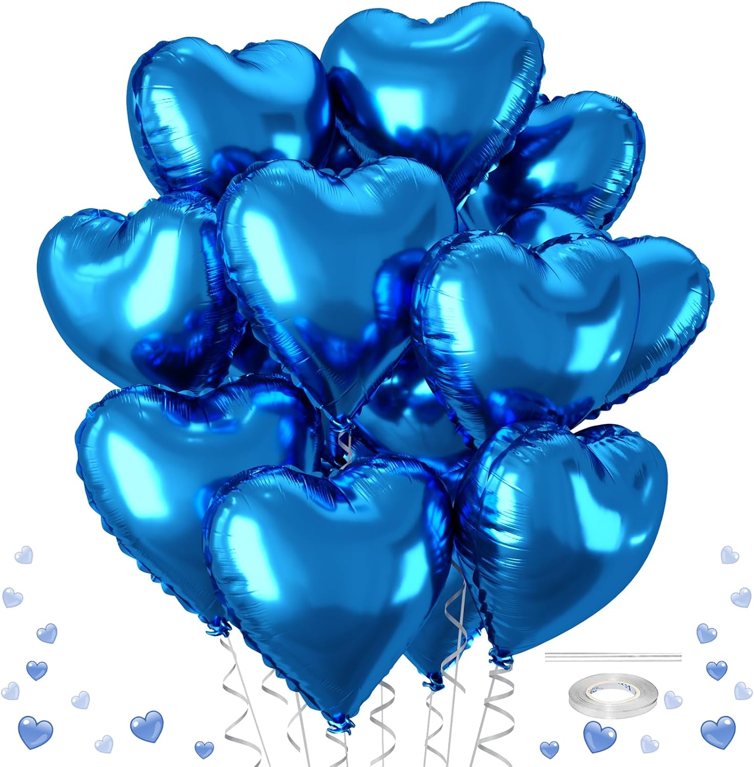 • Blue Heart Balloons:This 18 inches heart shaped balloons includes 12* blue heart balloons,1* blue ribbon, 1*straw, adding romance and warmth to your celebration. These large heart balloons will be the highlight of your party decorations, creating an atmosphere of love for everyone.