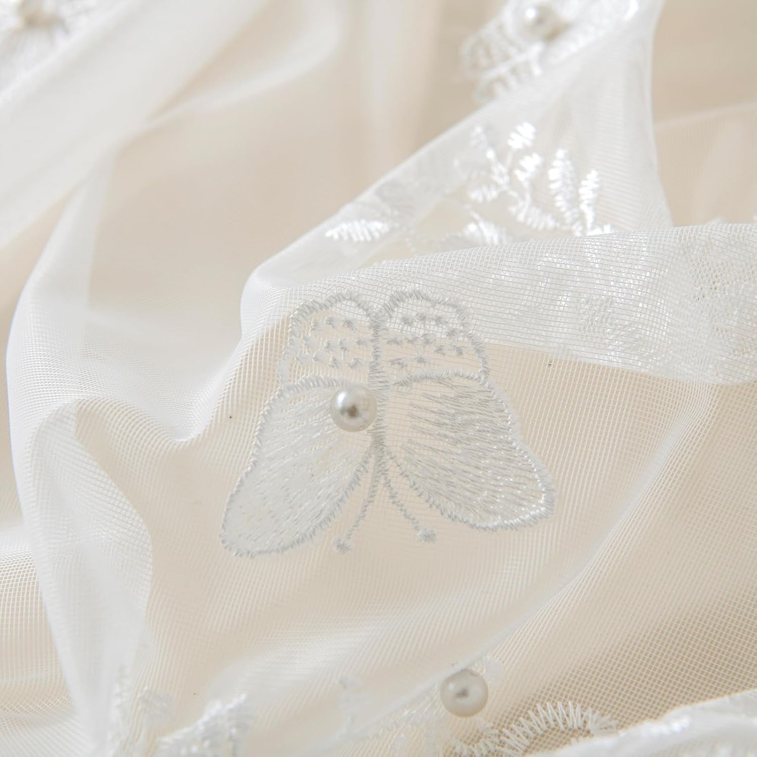 VISIONTEX White Sheer Voile Curtains, Decorative White Embossed Butterflies Rod Pocket Window Drapes for Home Kitchen, Living Room and Bedroom 54 x 72 Inch, Set of 2 Curtain Panels