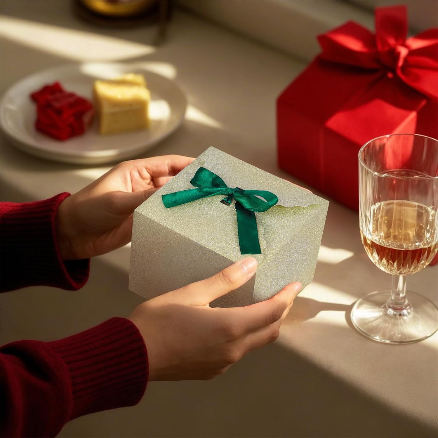 • Package Includes: 10 gold glitter folding boxes made from high-quality paper, along with 10 ribbons, easy to assemble. Each box measures 4.7" x 4.7" x 3.5"