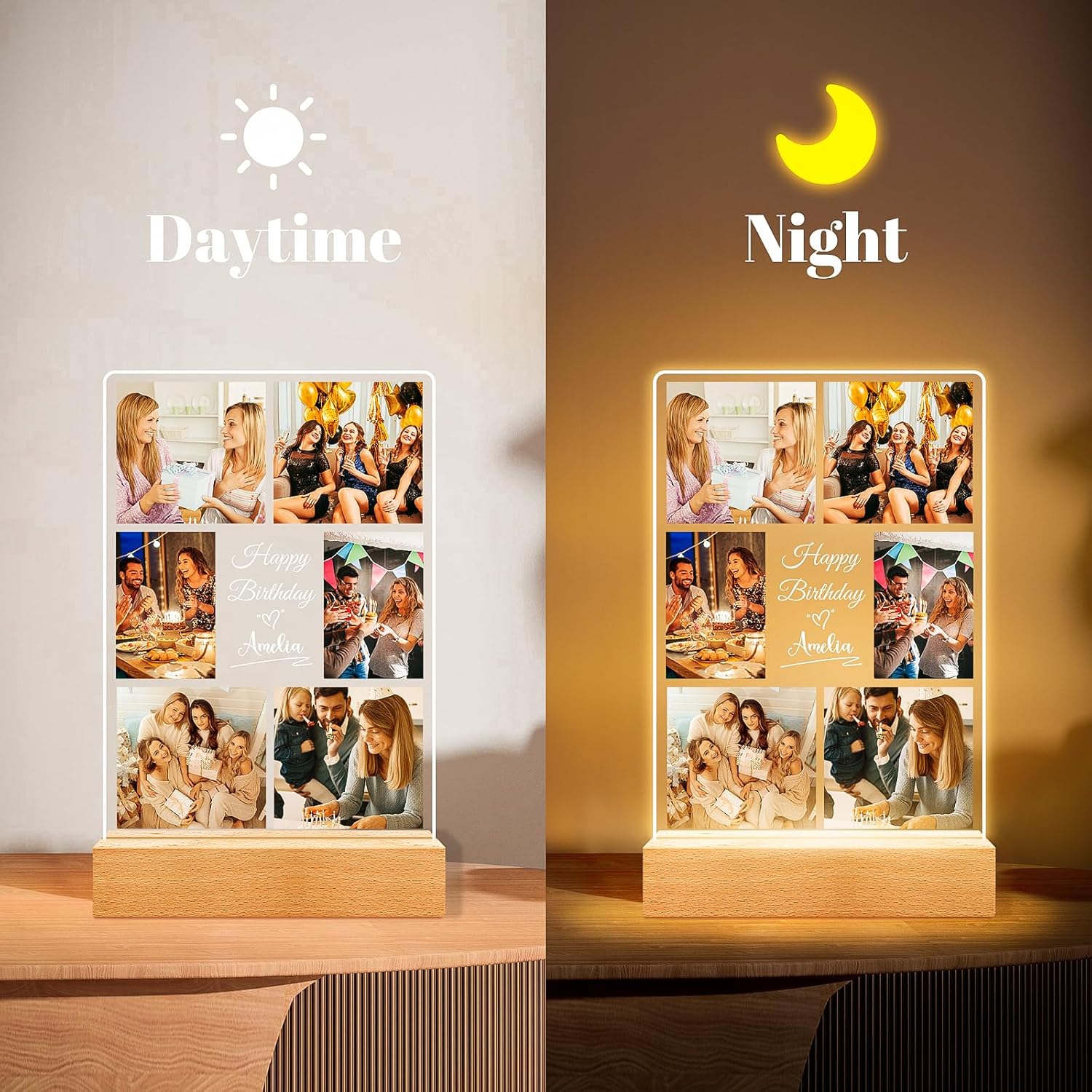 Custom Picture Frames with Photo, Personalized Collage Picture Frame with Night Light, Custom Photo Frame, Customized Best Friend Photo Gifts, Personalized Birthday Gifts for Women Friends Her Him
