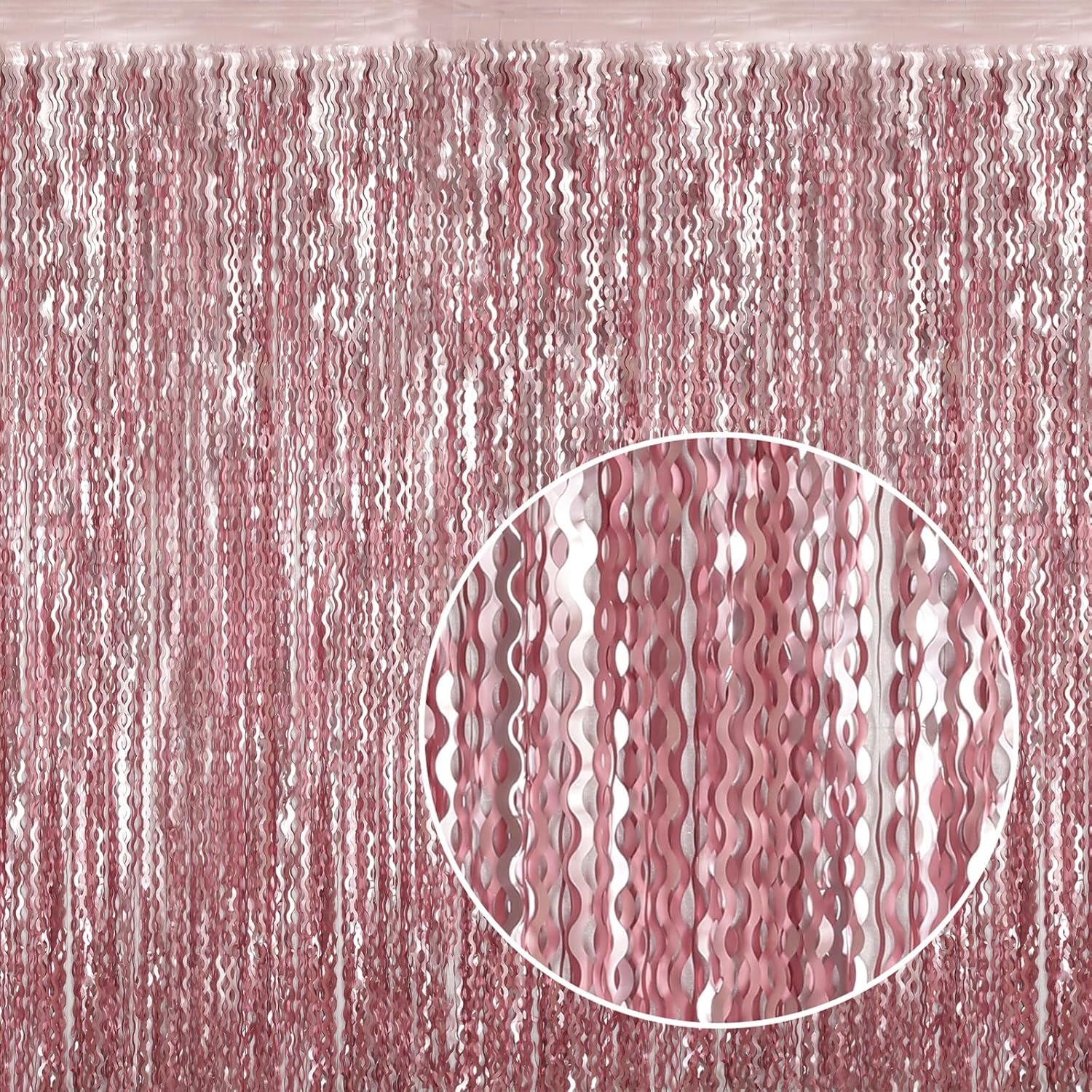 • Wavy Shape and Quality Material: The metallic tinsel backdrop is made of aluminum foil with wavy shape,You can overlap or side by side the light pink fringe backdrop make it more fuller and better look