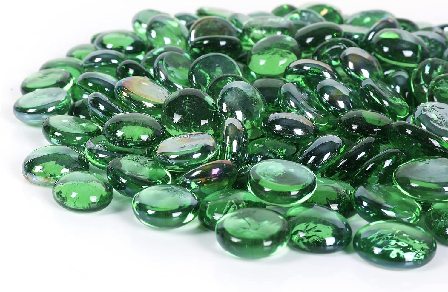 11LB Fire Glass Beads Flat Glass Marbles for Outdoor Fire Pit and Fireplace, Glass Gemstones for Vase Filler, Aquariums, Hydroponics Plants, Home Decor and Christmas DIY Craft, Green