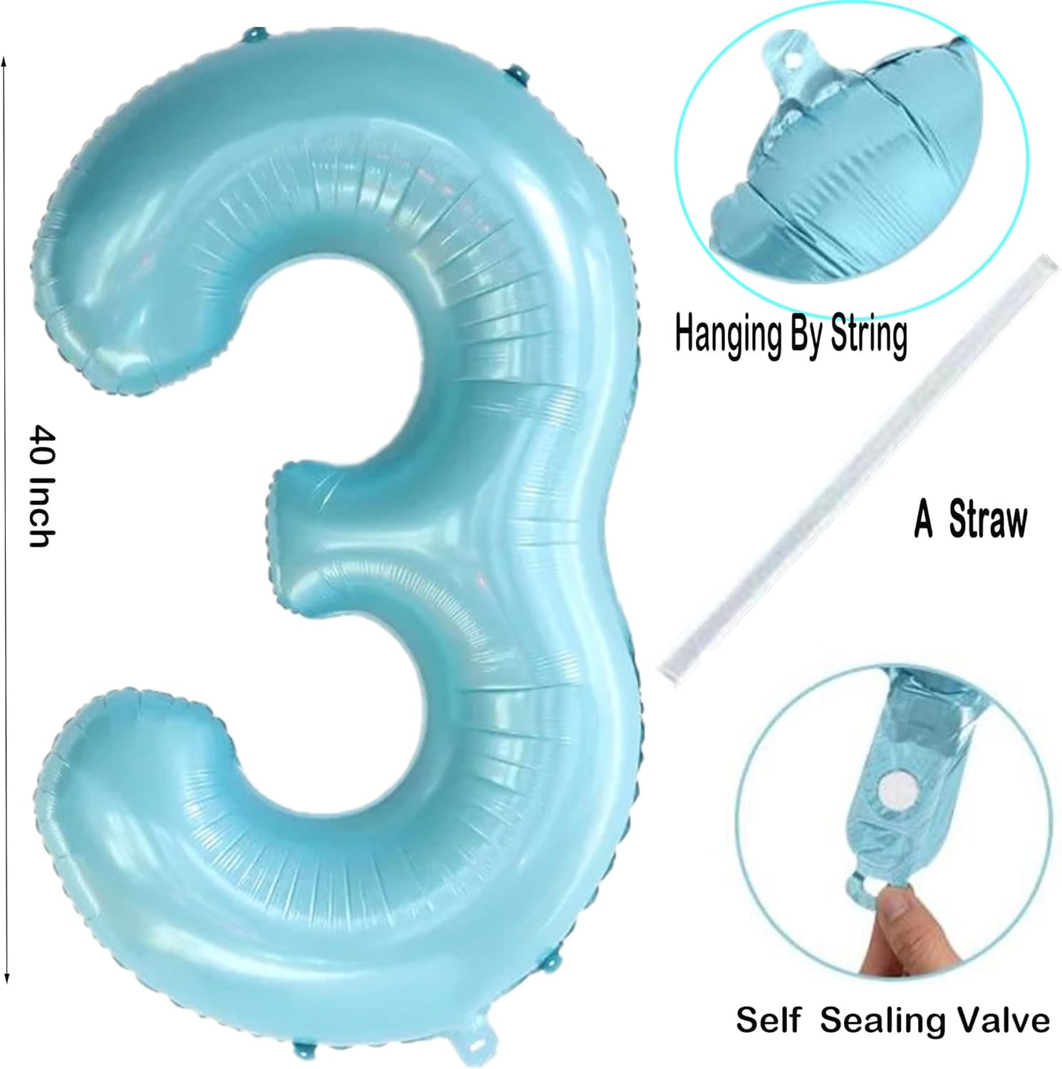 • 【Reusable 】: Giant light blue number 3 balloon can be reusable repeatedly with self-sealing valve, convenient to inflate and deflate by an air. After party ending, the number balloons will easy to deflate and store for next time use. Do not overfill the balloon to avoid sunburn, overheating, sharp objects and excessive friction.