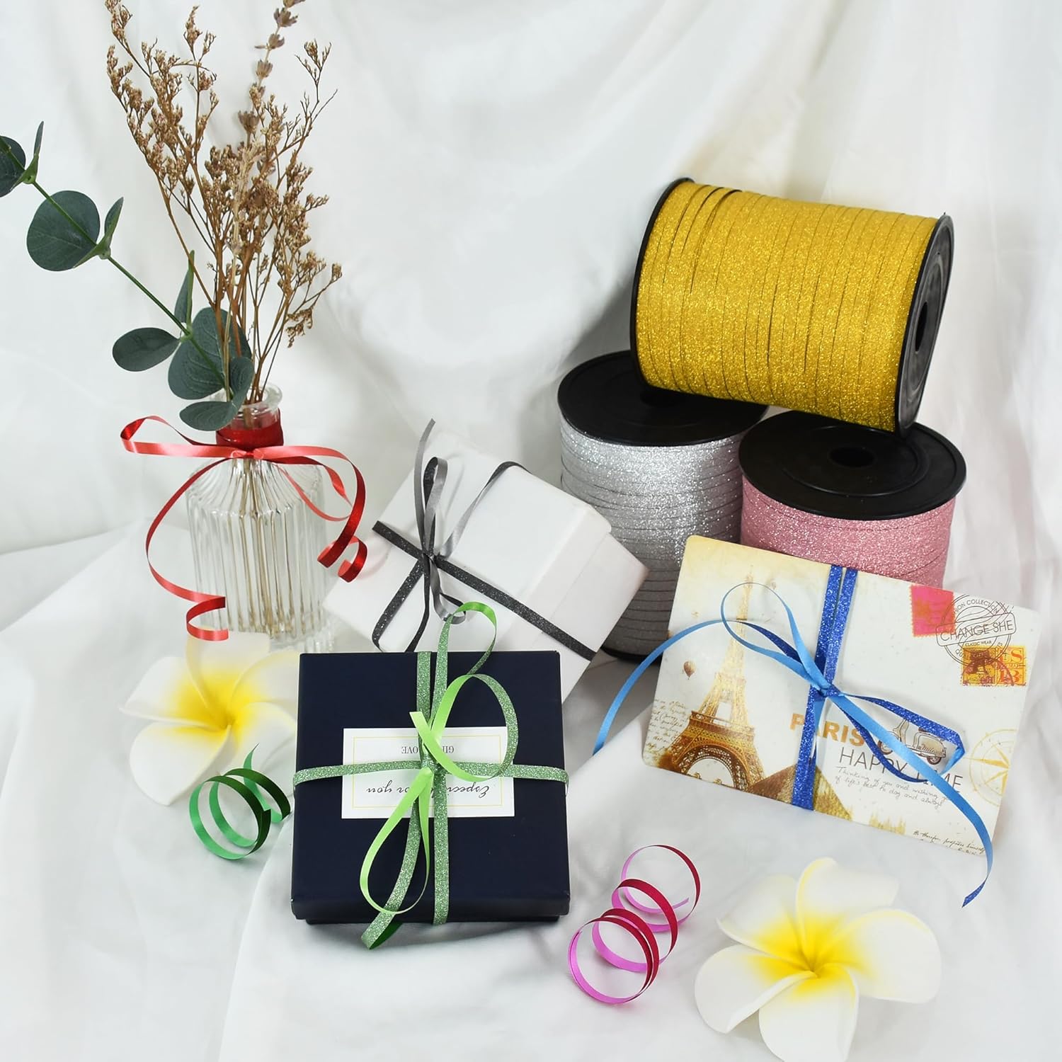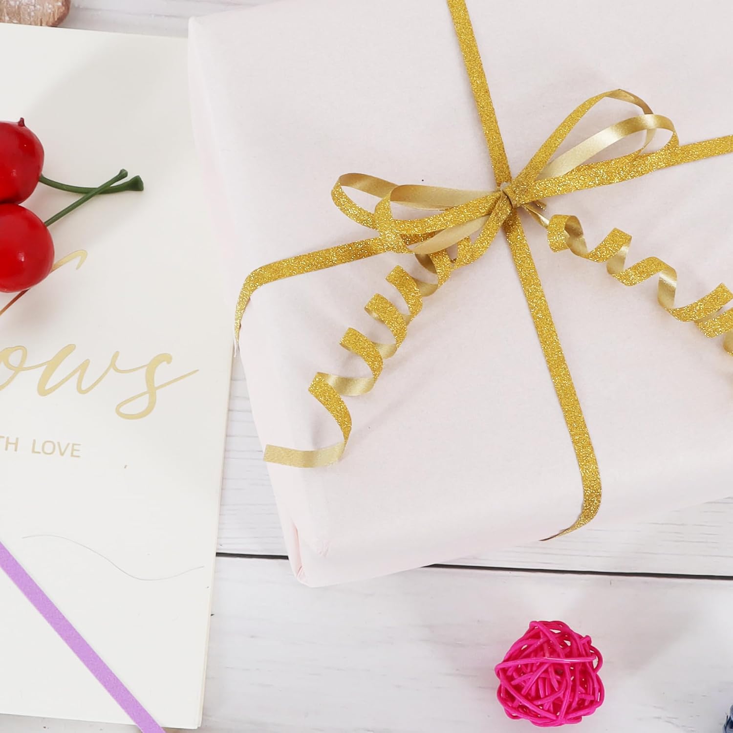 BEISHIDA Gold Glitter Ribbon - 500 Yards Curling Crimped, Shiny for Gift Wrapping, Birthday Party, Festival, Art Craft, Florist Flowers Decoration