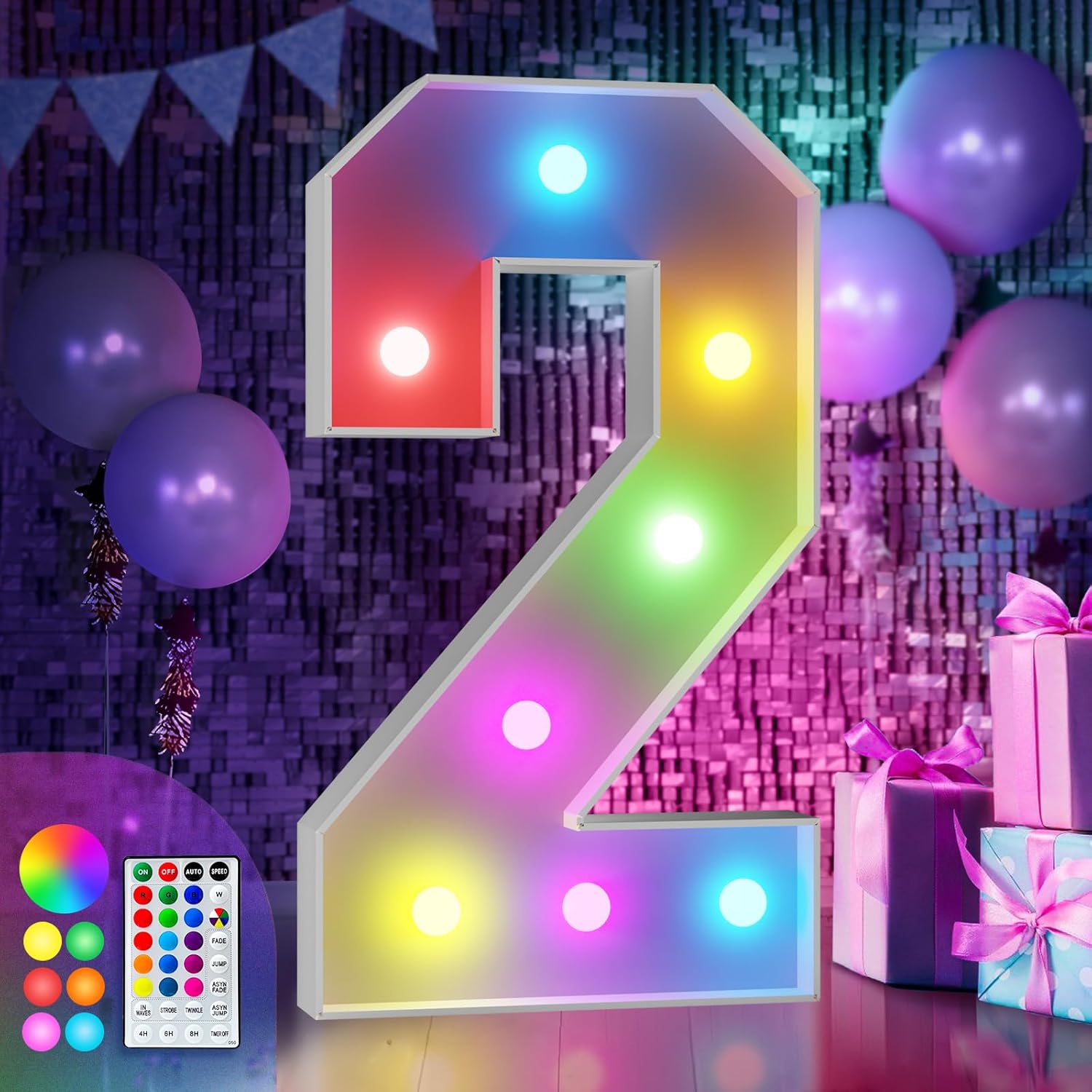imprsv 3FT Colorful Marquee Numbers,18 Colors Number 2 with Remote, Light Up Numbers Sign for 12th 20th Birthday Anniversary Party Decor, Pre-Cut Foam Board Ki, Mosaic Numbers for Balloon
