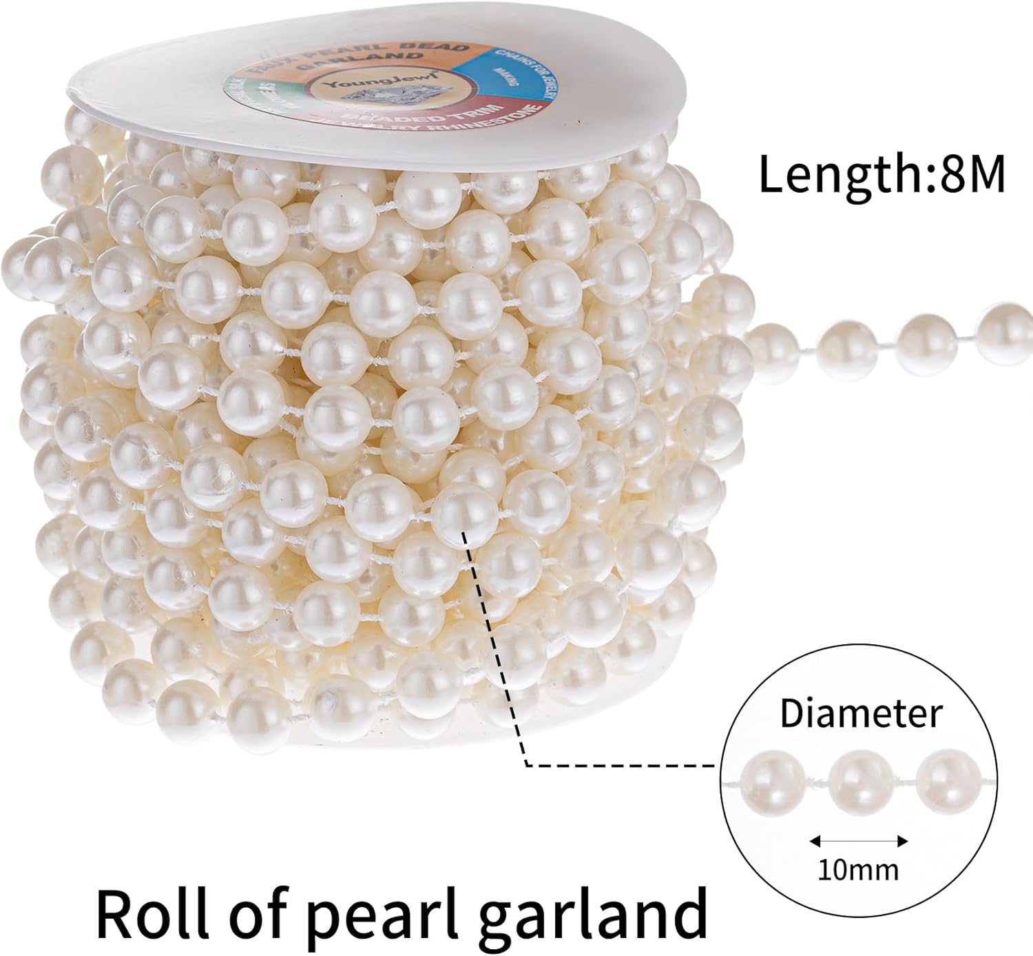 • Lenght:8m/27ft per roll,Beads Size:10mm