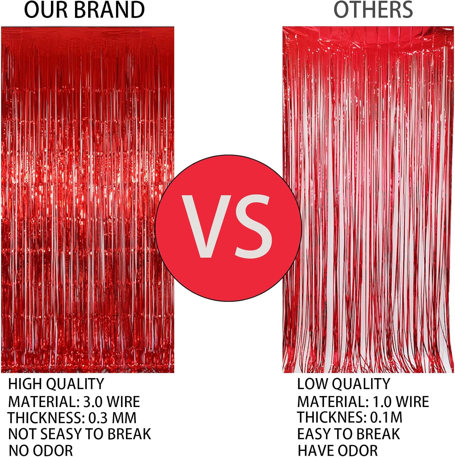Keyali 4 Pack 3.3 * 8.3 ft Foil Curtain Metallic Tinsel Fringe Curtains Photo Booth Props Backdrop for Birthday Wedding Engagement Baby Shower Christmas Holiday Celebration Partyl,Red