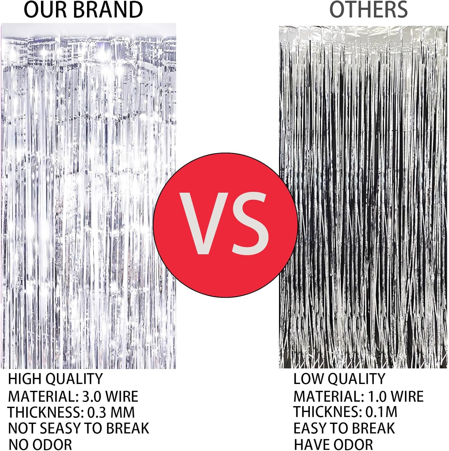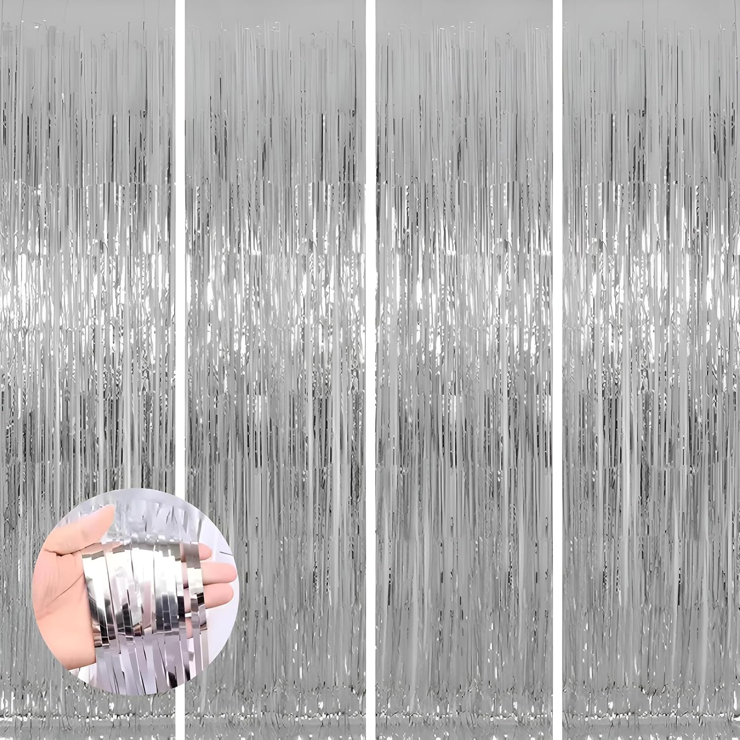• 4 Pack foil fringe tinsel backdrops: each measuring a whopping 3.3 ft x 8.3 ft.Long enough for indoor or outdoor parties. Also can be cut in suitable length for your birthdays Party decorations These backdrops are perfect for creating stunning party decorations, event backdrops, and photo booths that will leave your guests in awe.