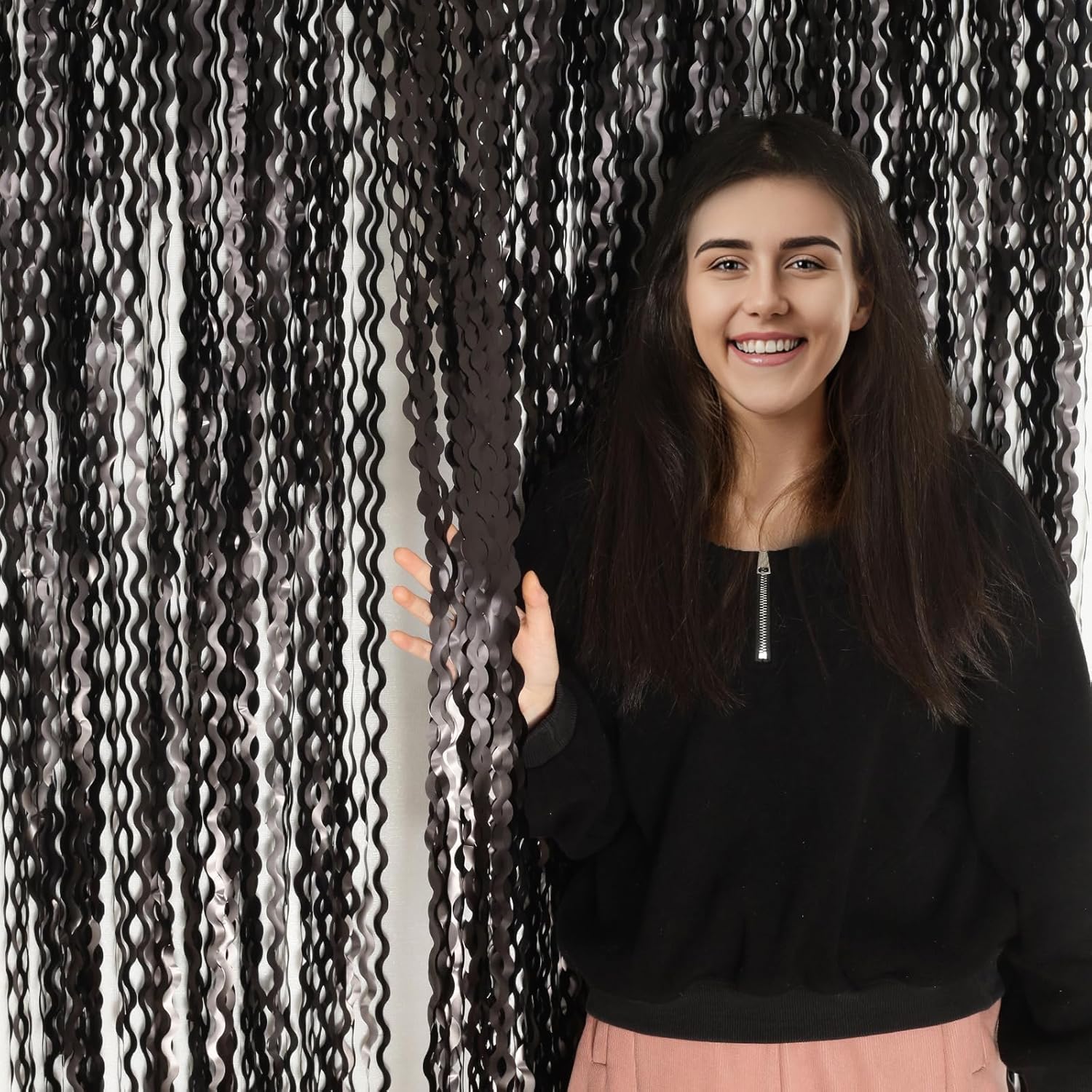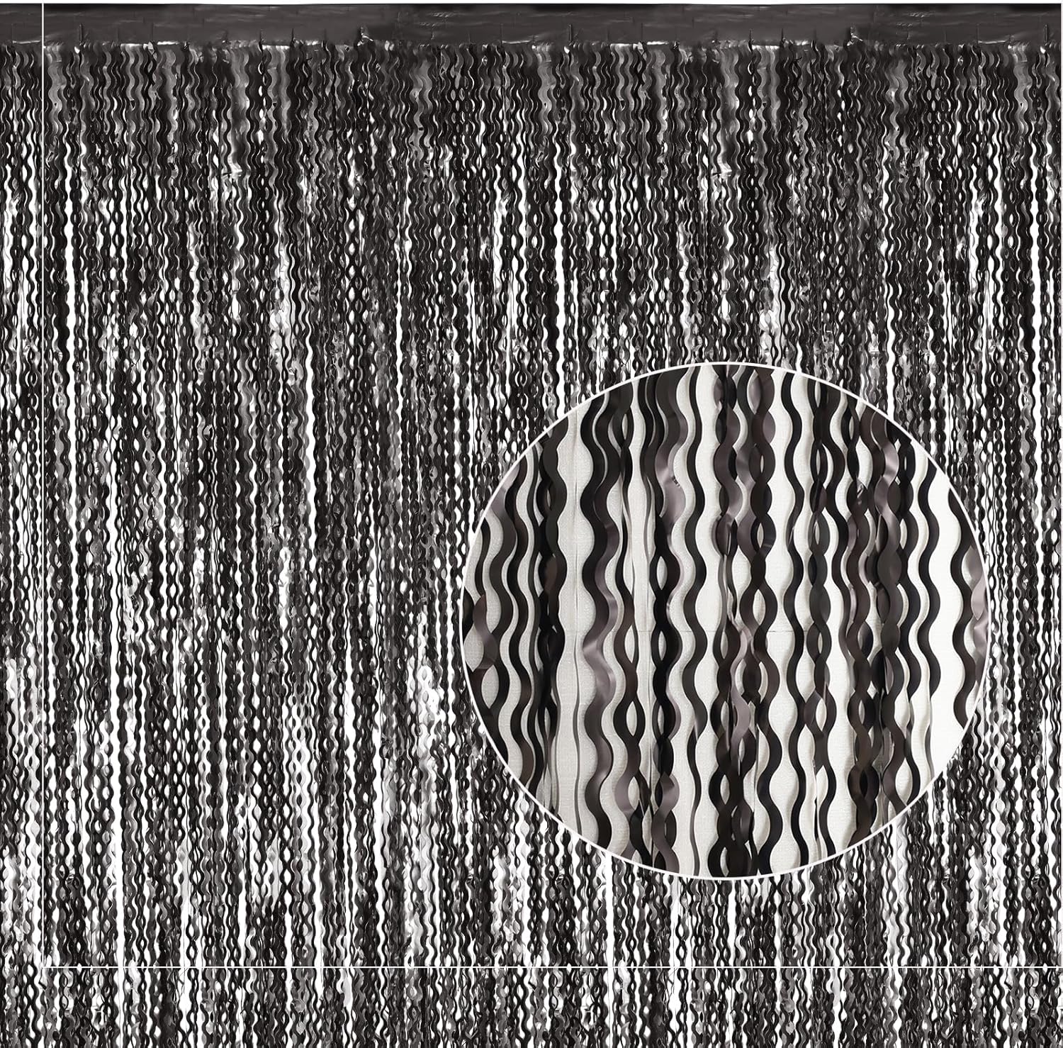 Black Foil Fringe Curtains Party Decorations - 4 Pack 3.3 ft x 6.6 ft Foil Party Curtain Streamer Backdrop for Halloween | Graduation | Fiesta Birthday Decor