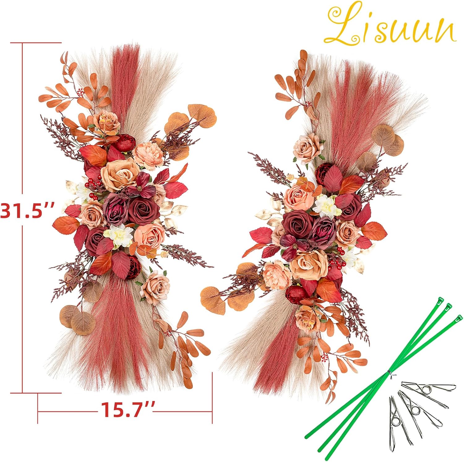 • Enlarged Size:The large flower swag design straightens measures 40" long x 14" wide(100*35cm), small flower tie measures 24" long x 12" wide(60*30cm),the larger size contains more flowers and decorations, let your wedding ceremony more colorful atmosphere.