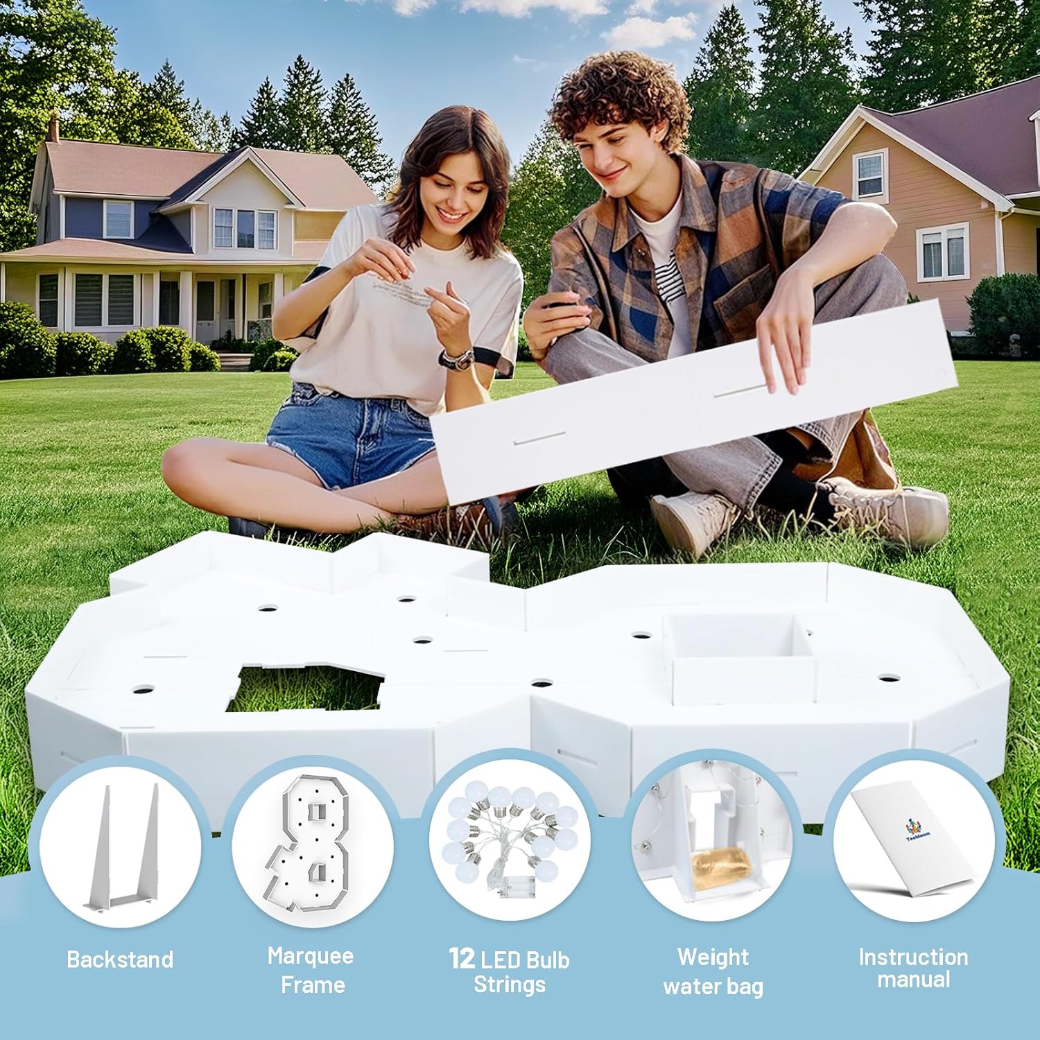 • BETTER STABILITY: Marquee Light Up Letters are made of high-density foam board for stability. Each letter has sturdy double backs and weighted fixed water pockets for individual use. This ensures your party tent sign won't topple, whether indoors or outdoors
