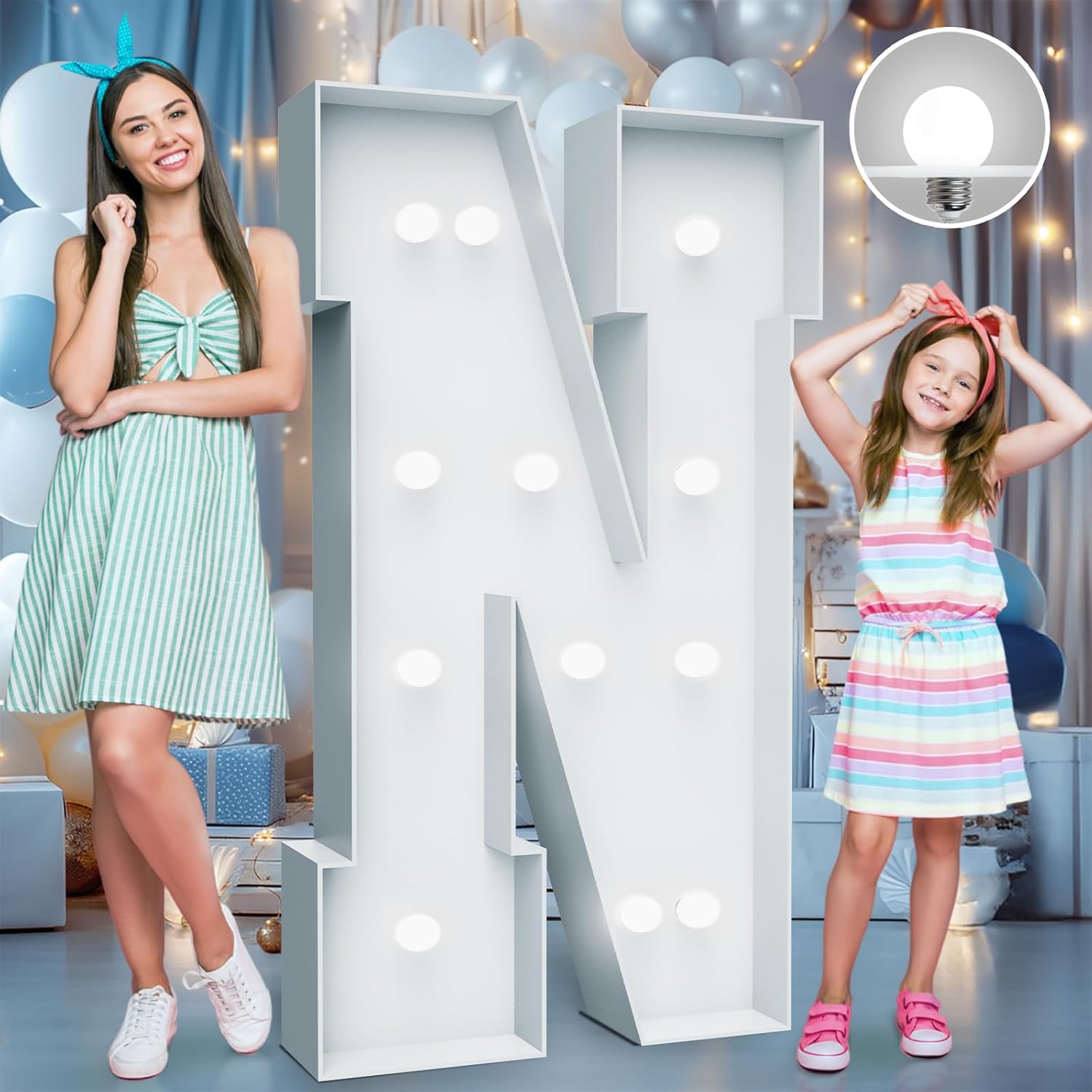 4FT Marquee Light Up Letters - Cool White Light Up Letters N with Fixed Water Bag, Party Decoration Large Marquee Light Up Letters can Be Used for Wedding Decoration, Birthday Party Decoration