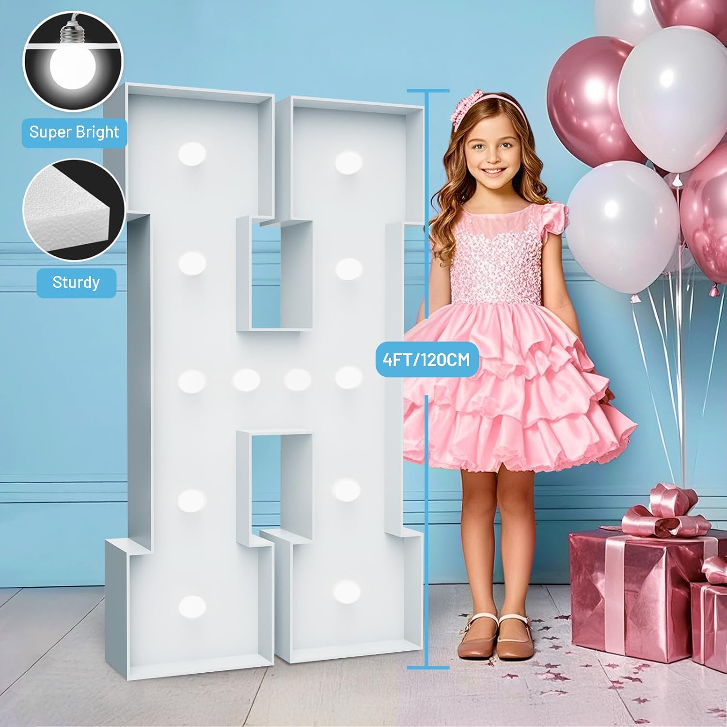 4FT Marquee Light Up Letters - Cool White Light Up Letters H with Fixed Water Bag, Party Decoration Large Marquee Light Up Letters can Be Used for Wedding Decoration, Birthday Party Decoration