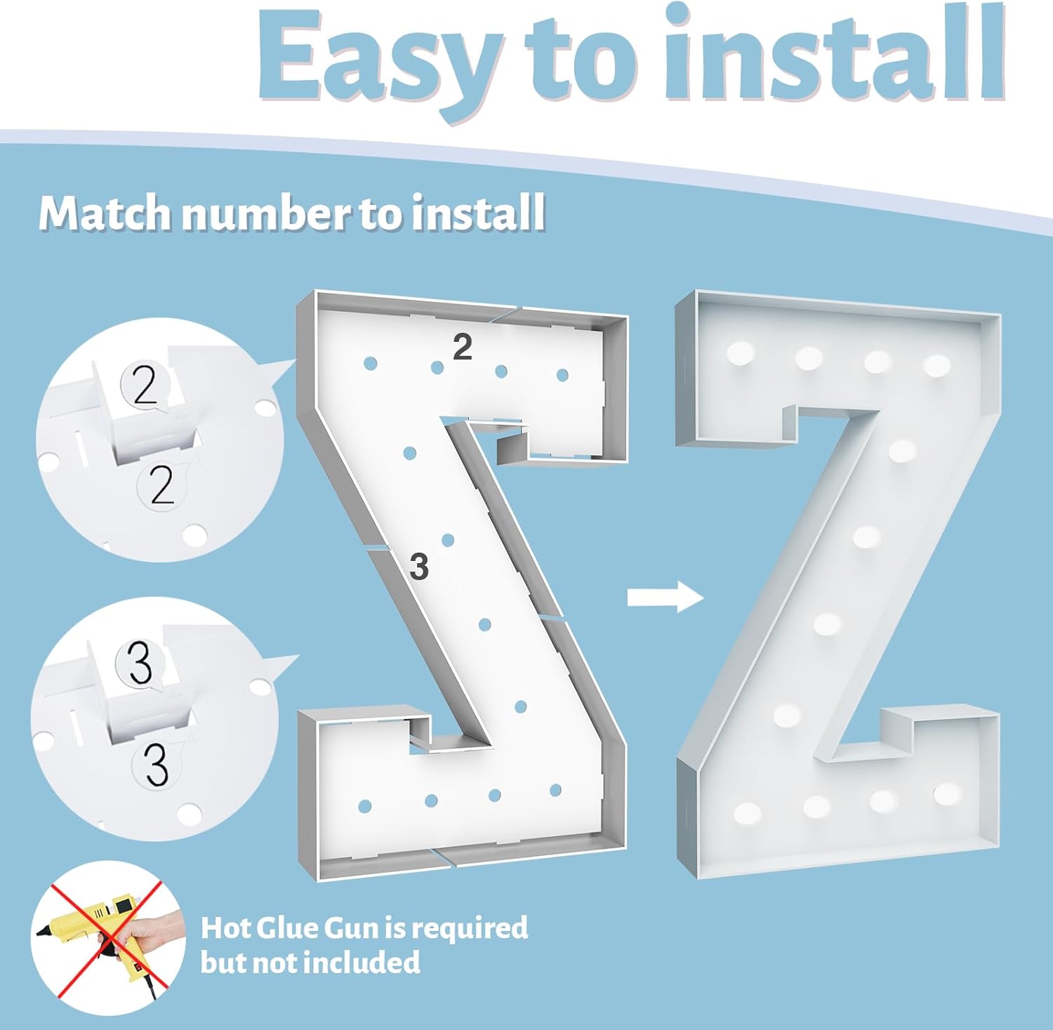 4FT Marquee Light Up Letters - Cool White Light Up Letters Z with Fixed Water Bag, Party Decoration Large Marquee Light Up Letters can Be Used for Wedding Decoration, Birthday Party Decoration