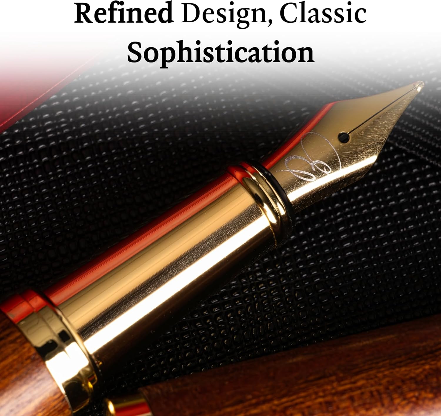 Ellington Pens Elegant Wood Fountain Pen Set – Includes Wooden Pen Box, Ink Converter, 6 Ink Cartridges, and Gift Box – Writing, Calligraphy