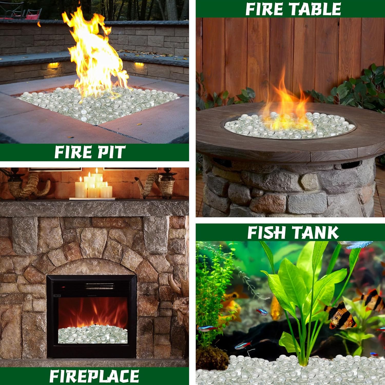 10 Pounds Firepit Glass, 3/4 Inch Glass Beads, Rocks for Fire Pit Table, Fireplace and Fire Bowl, Crystal Luster