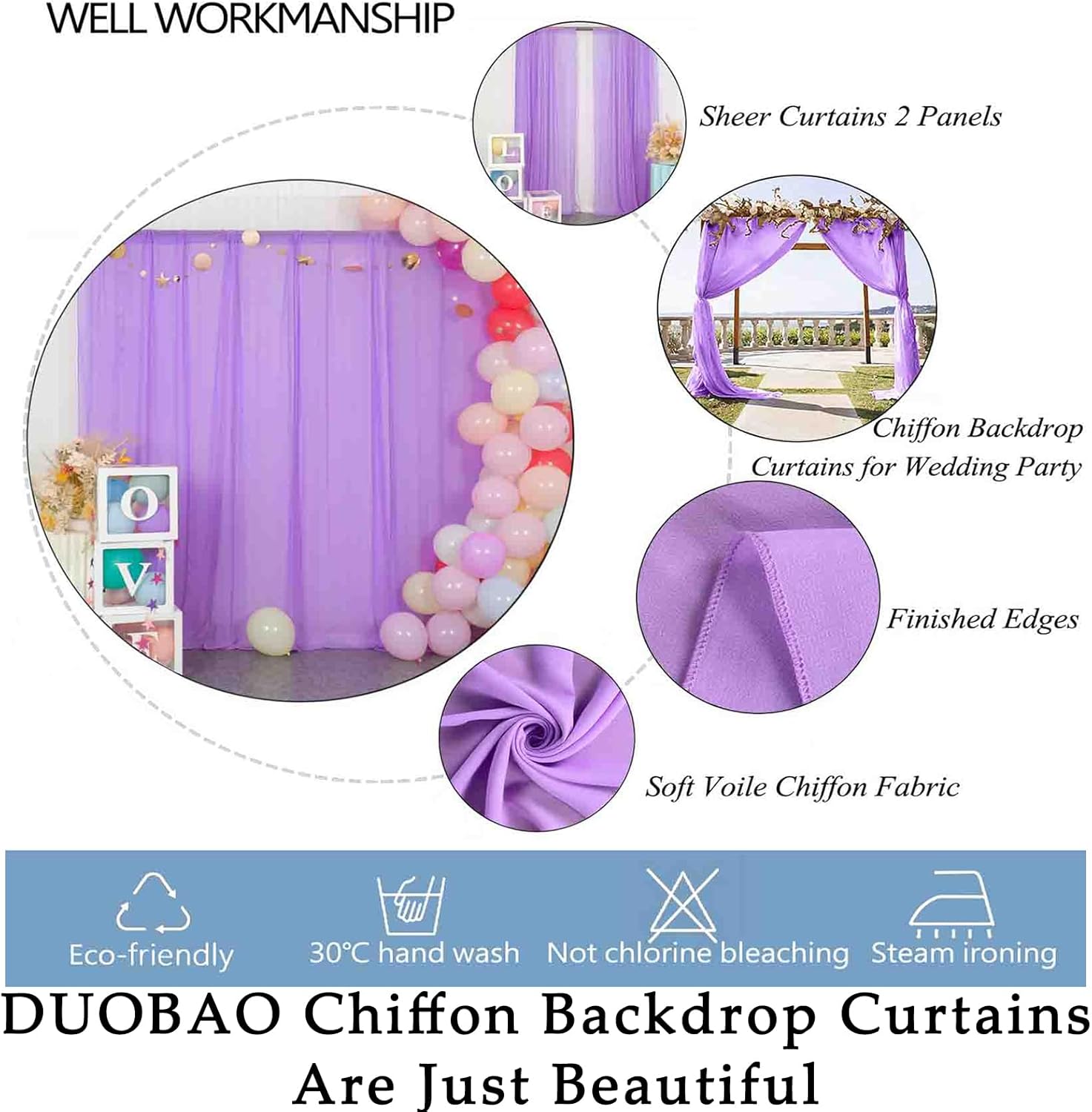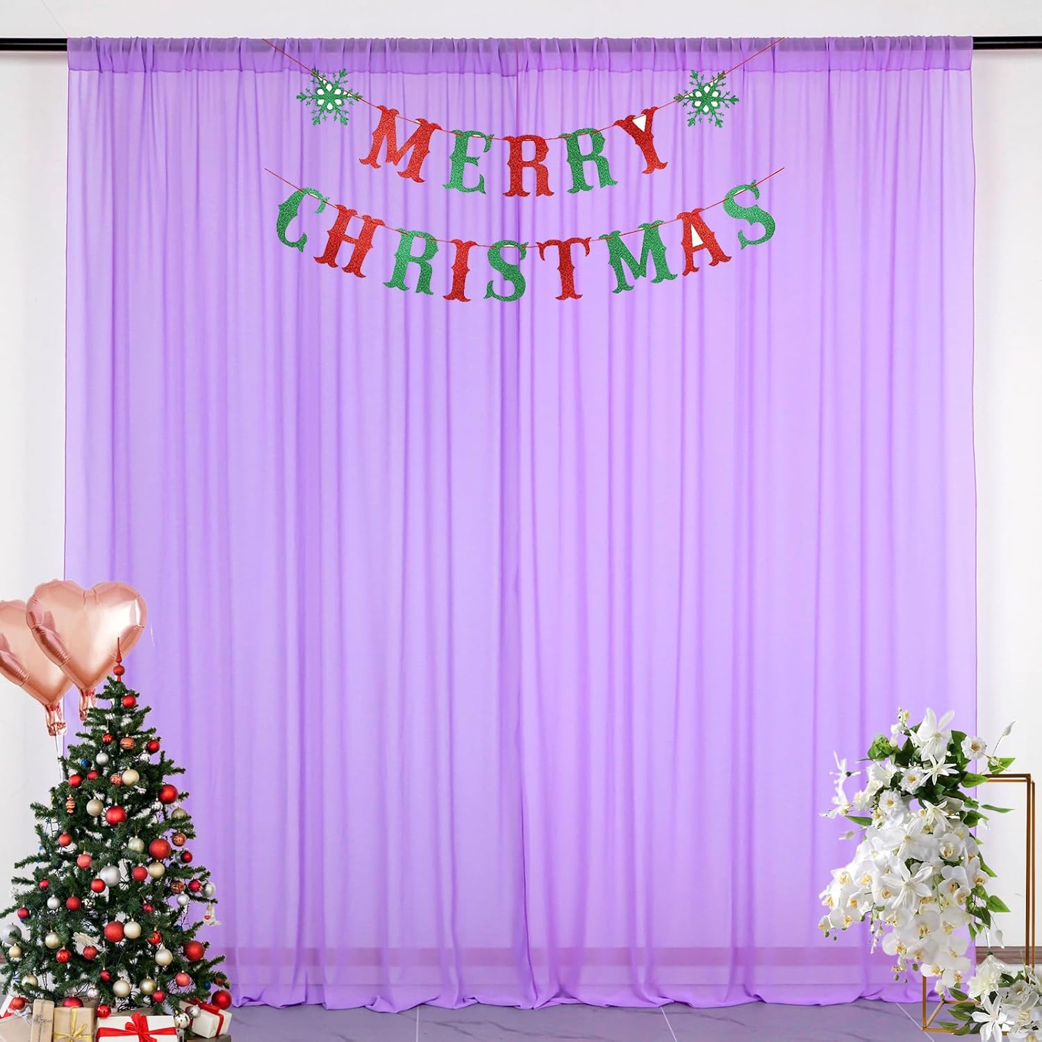 • ★ SHEER CHIFFON CURTAINS :Includes 2 Panels Width 5ft (total width 10ft for 2 panels) chiffon backdrop curtain lavender color--Different electronic devices seeing the image colors will different . Please refer to the actual product for specific color.