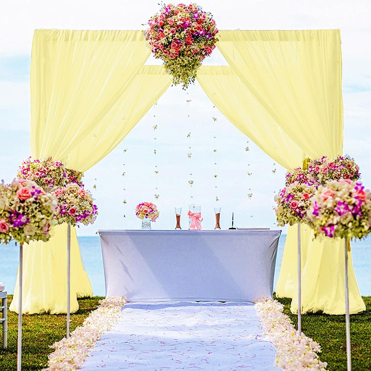 DUOBAO Yellow Chiffon Backdrop Curtain-2 Panels 58x120-Inch Wedding Backdrops Drape Yellow Curtains for Bedroom Voile Window Drapes Photography Background for Party Ceremony