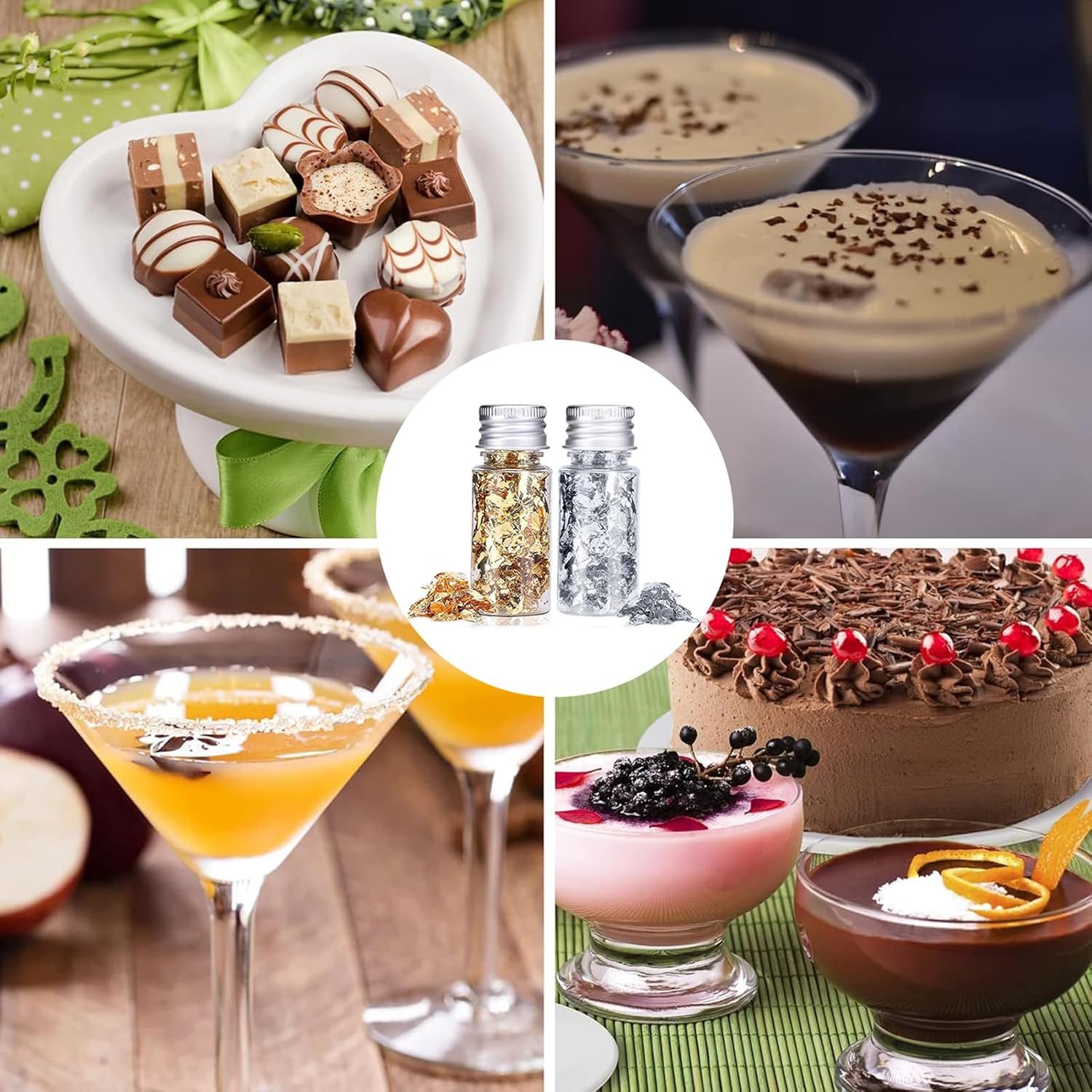 • 【Perfect Decoration For Food】Edible gold flakes is a perfect decorative items, can be added to coffee, tea, hot pot, seasonings, cosmetics, bath agents, etc. Gold leaf fakes beautiful and stylish, gold flakes for crafts can be widely used in families, bars, restaurants, etc.