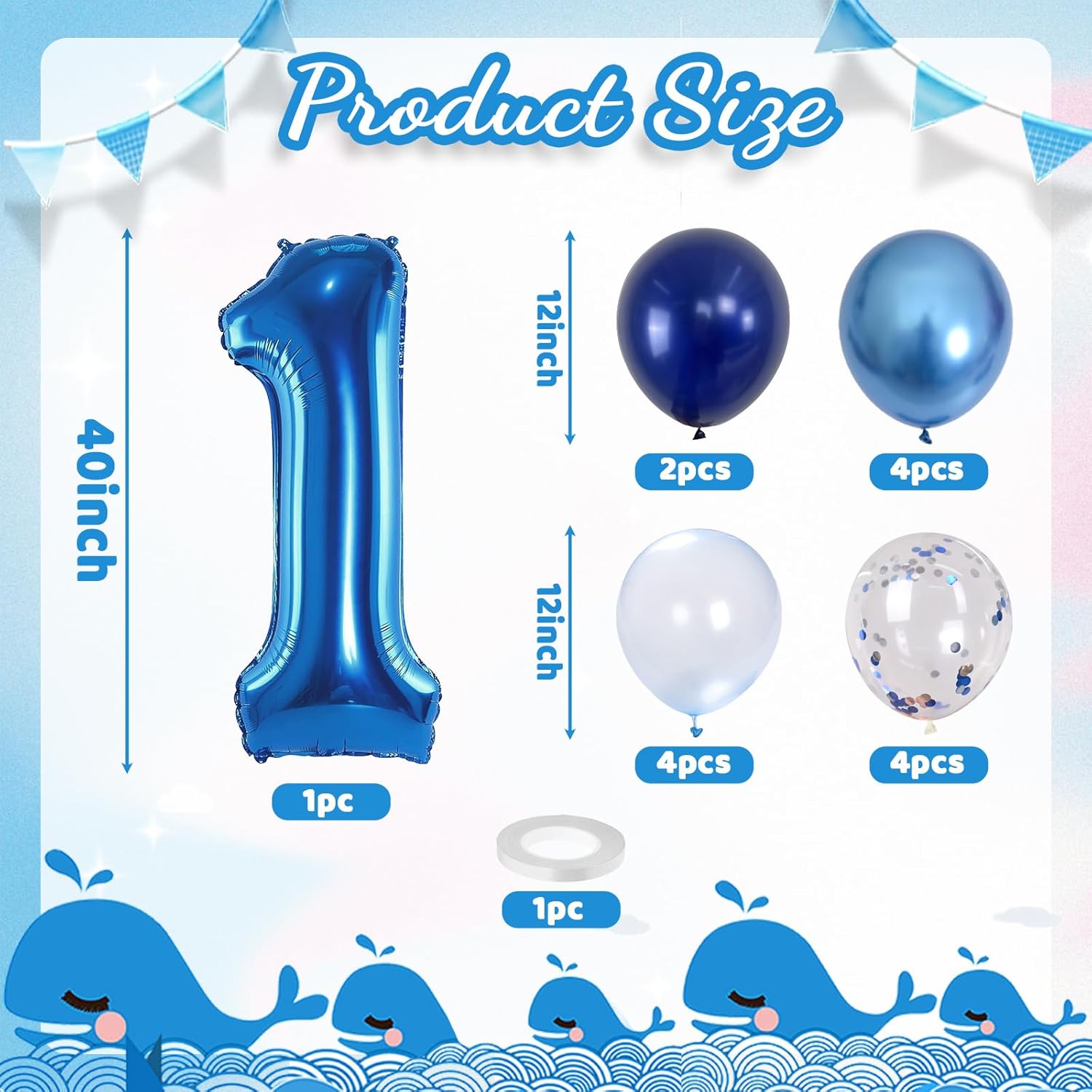 • ๐Ÿ’“ Dark Blue Number 1 Balloon: Our package included 40 inch foil number 1 balloon(1pcs), 12 inch metallic blue balloon(4pcs), blue silver confetti balloon(4pcs), pastel blue balloon(4pcs), Light Navy Blue Balloon(2pcs), 1pcs straw and 1 roll ribbon. Simply inflate the balloon using the straw, and you're ready to party! Navy blue number foil balloons are the best for girls or boys birthday party decoration.