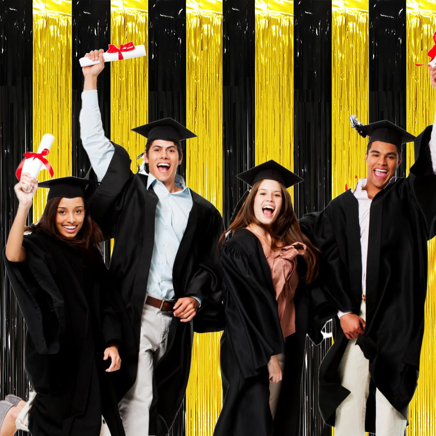 • Eye-Catching Design: These gold black foil fringe tinsel backdrops boast vibrant colors and a shimmering effect that reflects light beautifully. Your friends will be mesmerized by the captivating atmosphere these curtains create