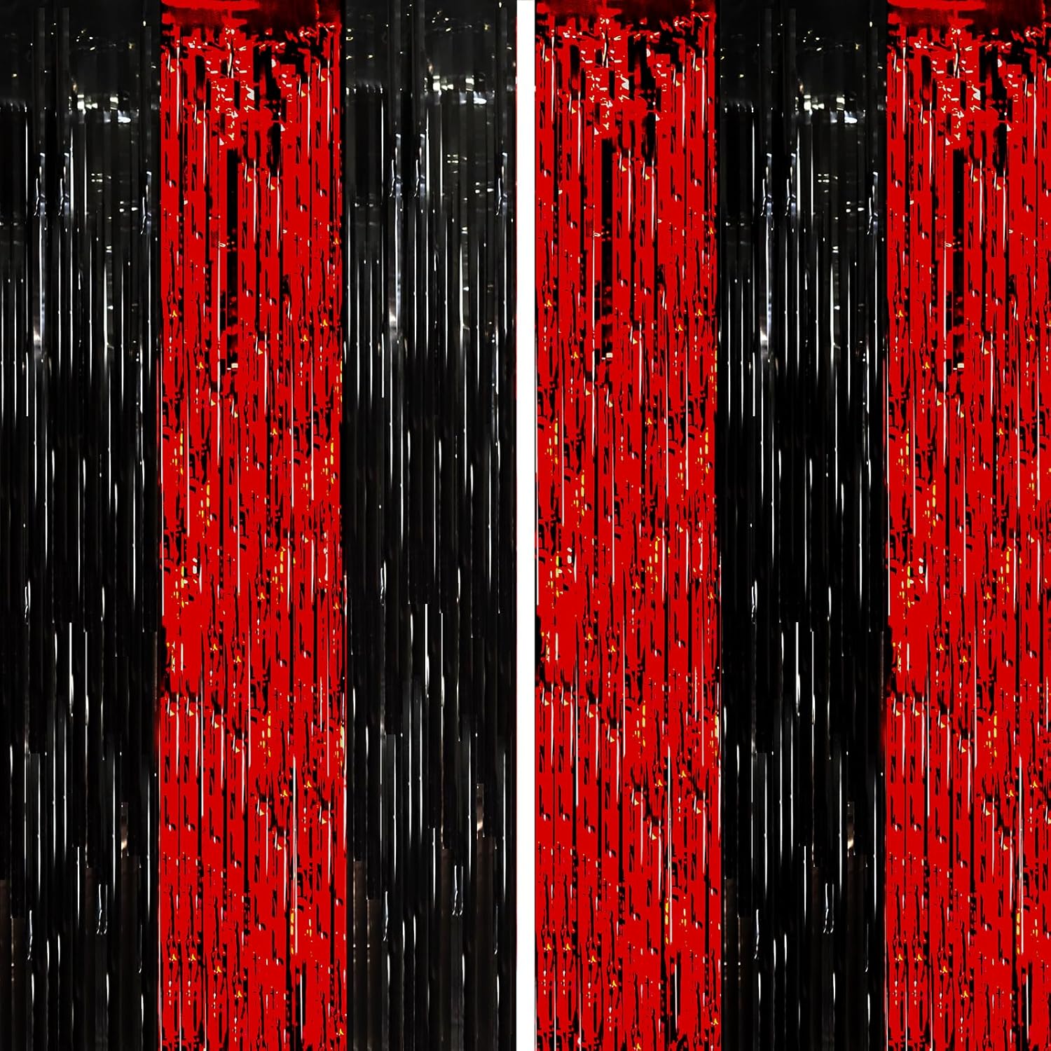 • Premium Quality: Crafted from shiny PET tinsel, these red and black fringe curtains are designed to be light weight, easy to hang, and resistant to wear and tear. The metallic party streamers reflect light beautifully, creating a mesmerizing visual effect