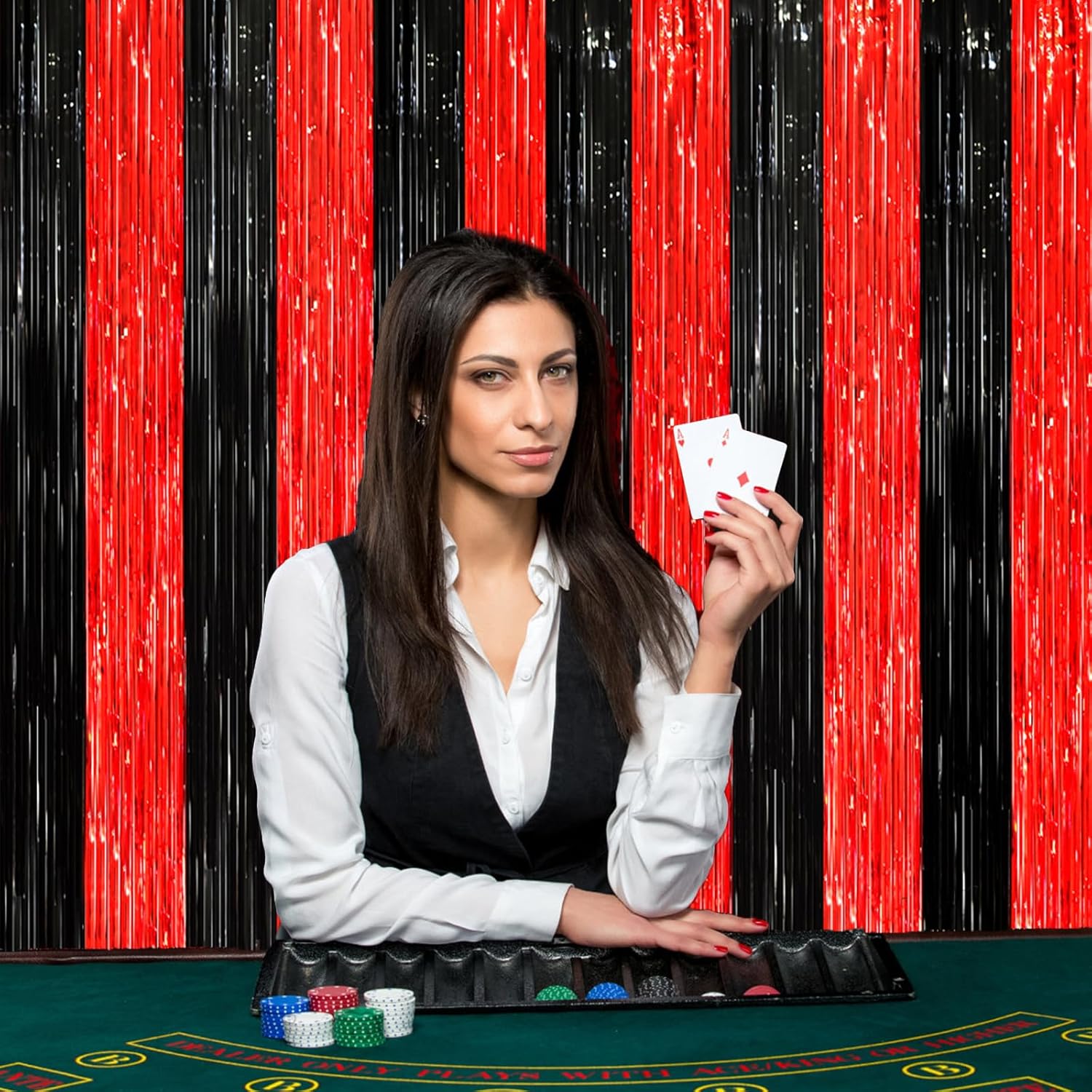 • Eye-Catching Design: These red black foil fringe tinsel backdrops boast vibrant colors and a shimmering effect that reflects light beautifully. Your friends will be mesmerized by the captivating atmosphere these curtains create.