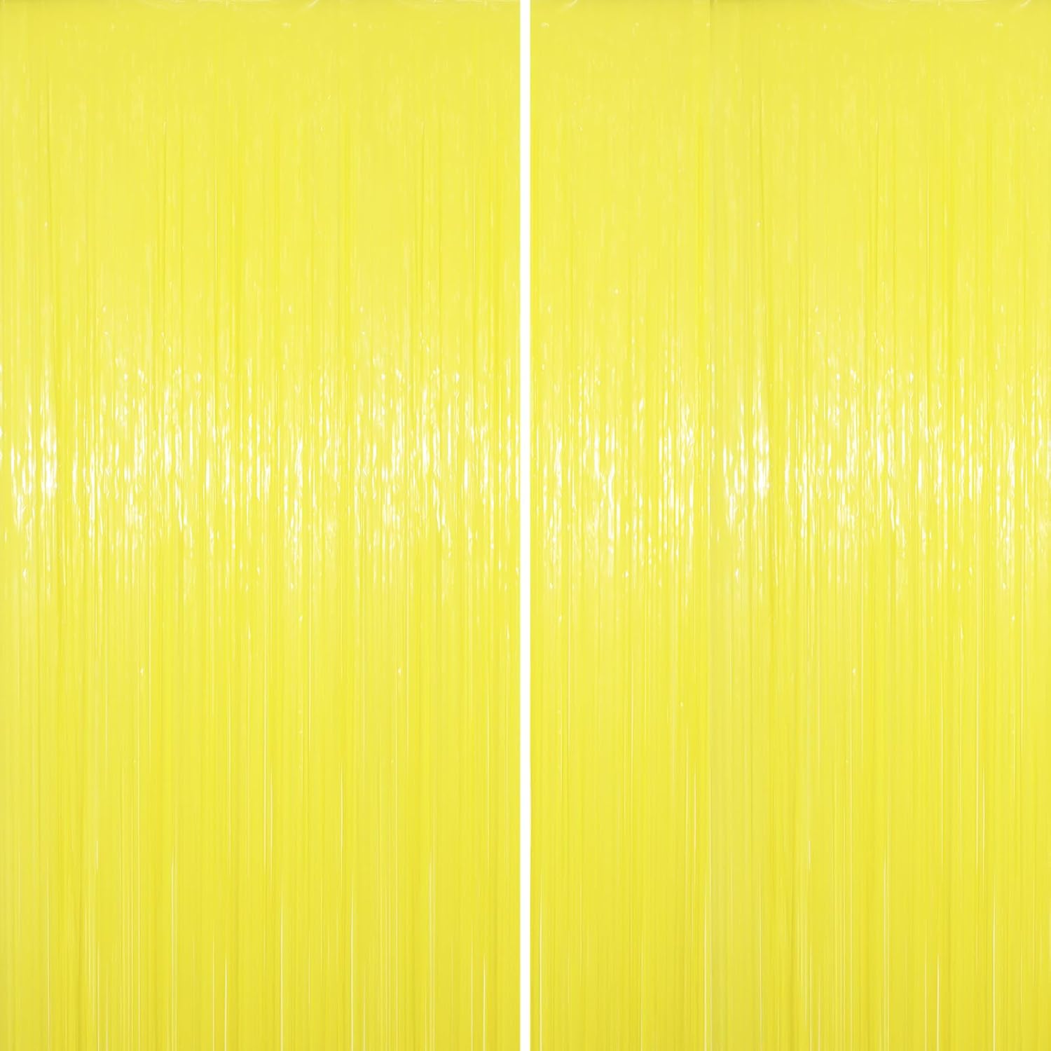 2 Pack Pastel Yellow Tinsel Foil Fringe Curtains, Yellow Party Decorations, Metallic Tinsel Party Streamers Backdrop for Birthday Baby Shower Graduation Gender Reveal Party Decorations