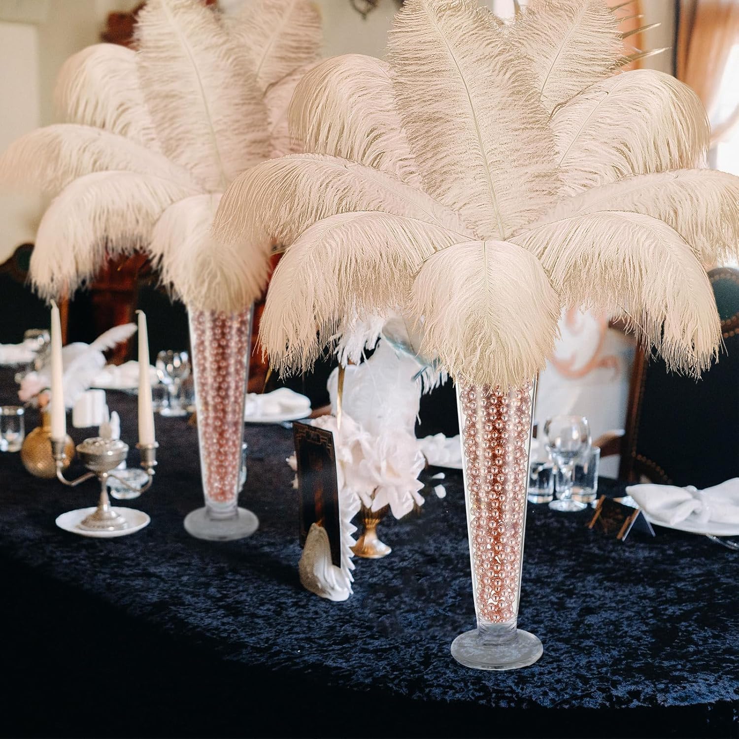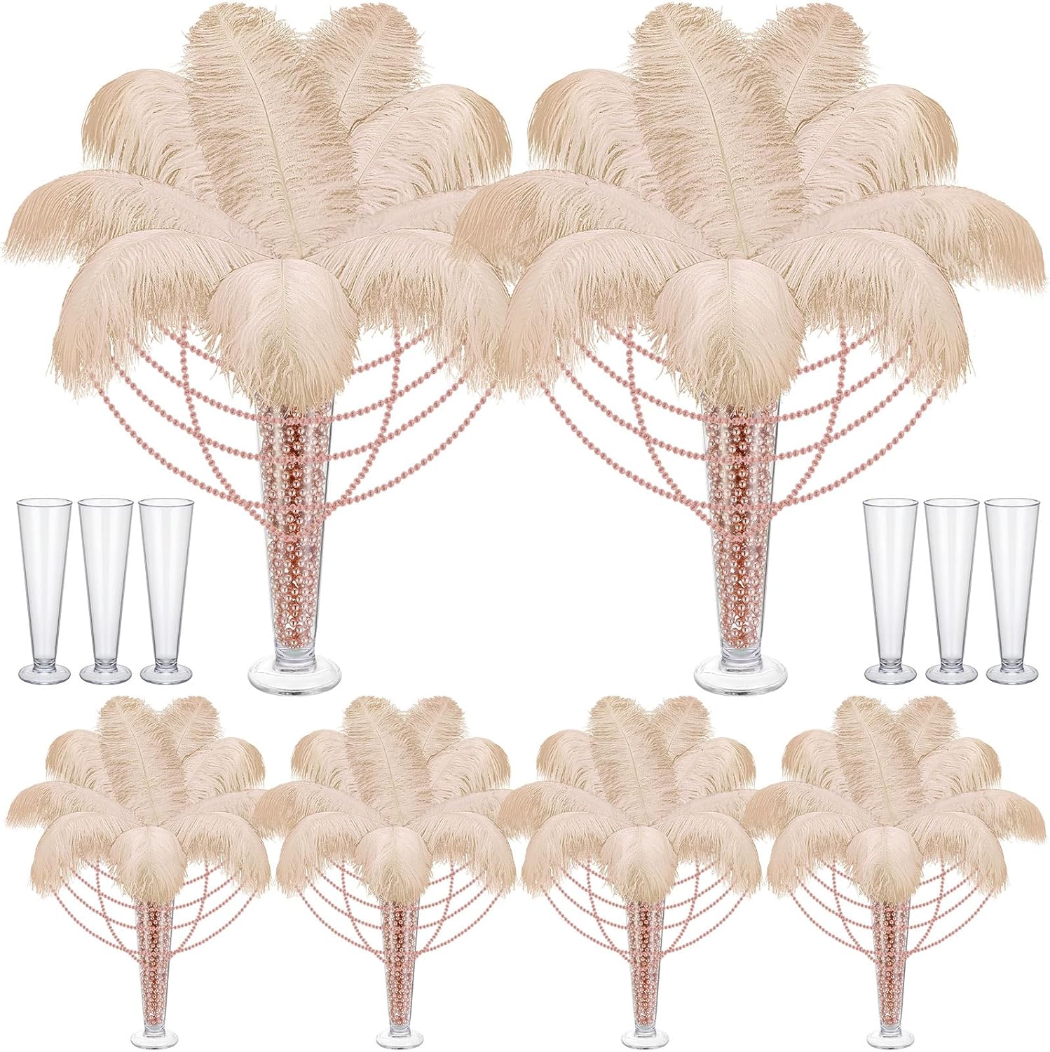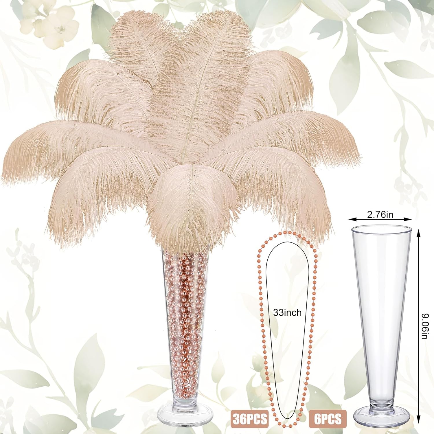 Yuxung 6 Sets Wedding Table Centerpiece Accessories Including 159 Pieces Natural Ostrich Feather Bulk Plastic Vases and Beads Necklaces for Wedding Home Party Centerpiece Supplies(Champagne)