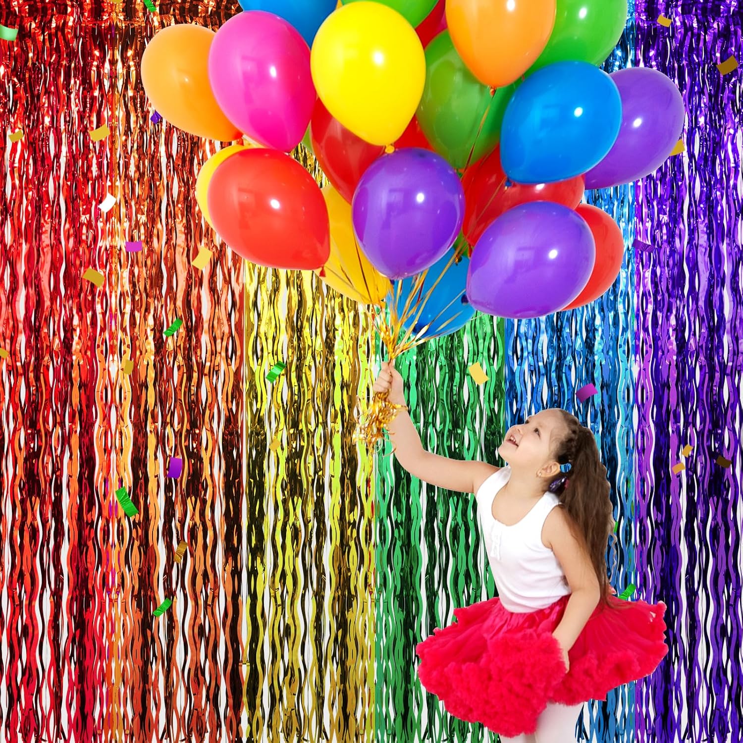 • Easy to Use: Our rainbow foil fringe backdrops come with self-adhesive tape at the top for easy use. Simply tear off the backing and attach it wherever you desire, creating a sparkling and festive atmosphere at your party with ease.