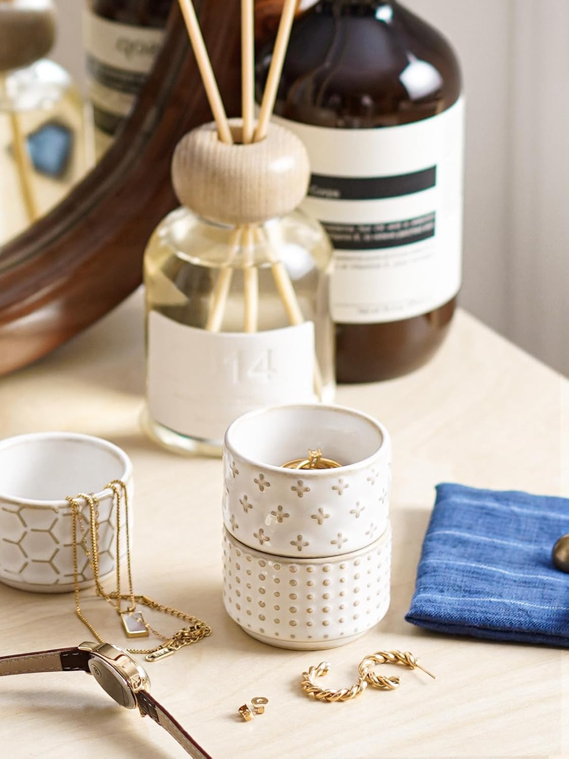 • Embossed Design: With classic white ceramic decorated in expressive embossment, these small candholders shaped to fit every corner of the room are an elegant and eye-catching choice for bedrooms, living rooms, and dining tables. Exquisite farmhouse style candle holders bring soothing and beauty to your daily life. Whether or not you put candles inside, they are your unique decorative piece