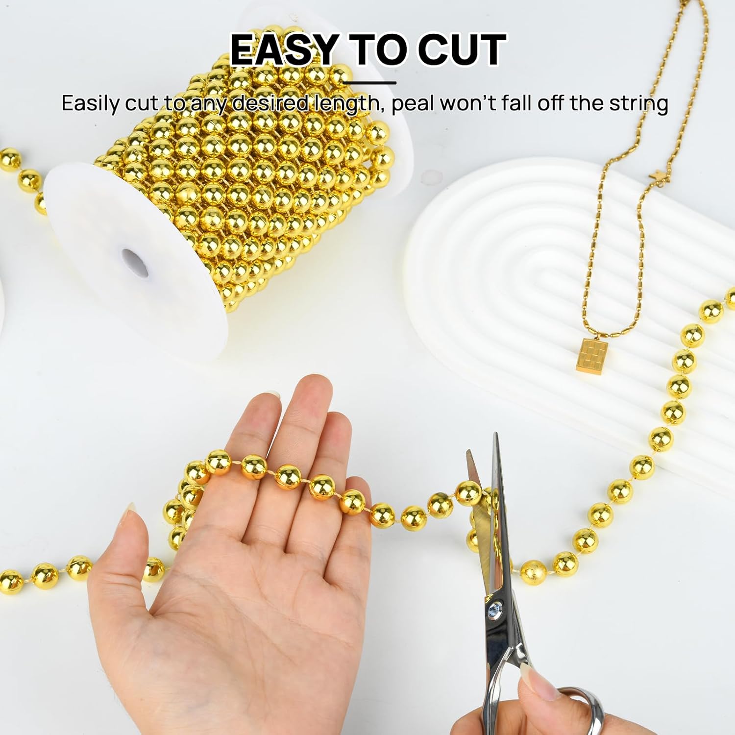 • Customizable Elegance - You can easily trim the pearl garland for decorating to any desired length, and the faux gold beads are tightly attached to the string and won't come off easily, ensuring a solid and long-lasting decorative effect