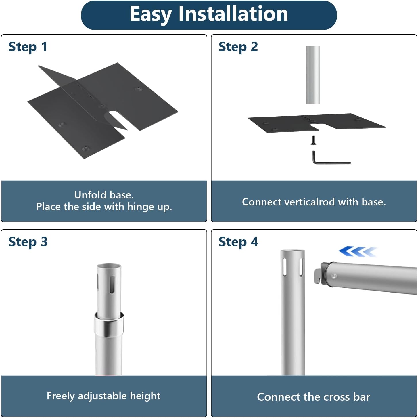 • [1 x Portable Carry Bag] Portable Carry Bag Made of Premium quality nylon material with sturdy zipper, easy to transport and store the whole kit.[2 x Heavy Metal Base] The Base is made of high-quality iron. Base weight: 4.6kg/1pcs, Base Size: 35 x 40 cm. Stable Metal Base can save more space. [2 x short straight pipes] Easy assembly in minutes without additional tools.