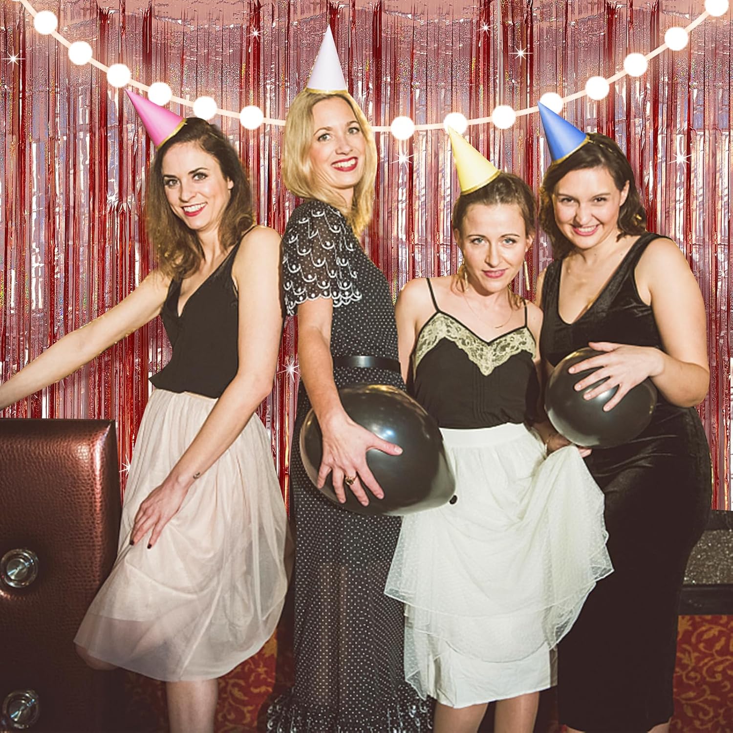 • Material: This tinsel backdrop is made of high-quality shiny tinsel. Metallic streamers are available in a variety of beautiful colors with a shiny, iridescent, and reflective surface that creates an eye-catching and mesmerizing effect. Sparkle and bling will definitely create a shiny nice atmosphere for your party.