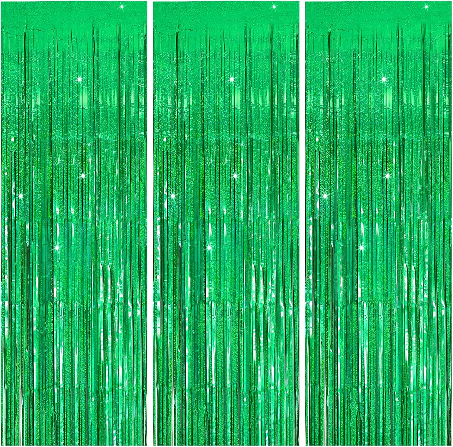 • Green Streamers:3 packs of foil fringe curtains, the size of the foil curtain is 3.28 ft x 6.56 ft.It's long enough to fit any occasion. Please do not stick the foil curtain on uneven or stained walls to prevent it from falling off.