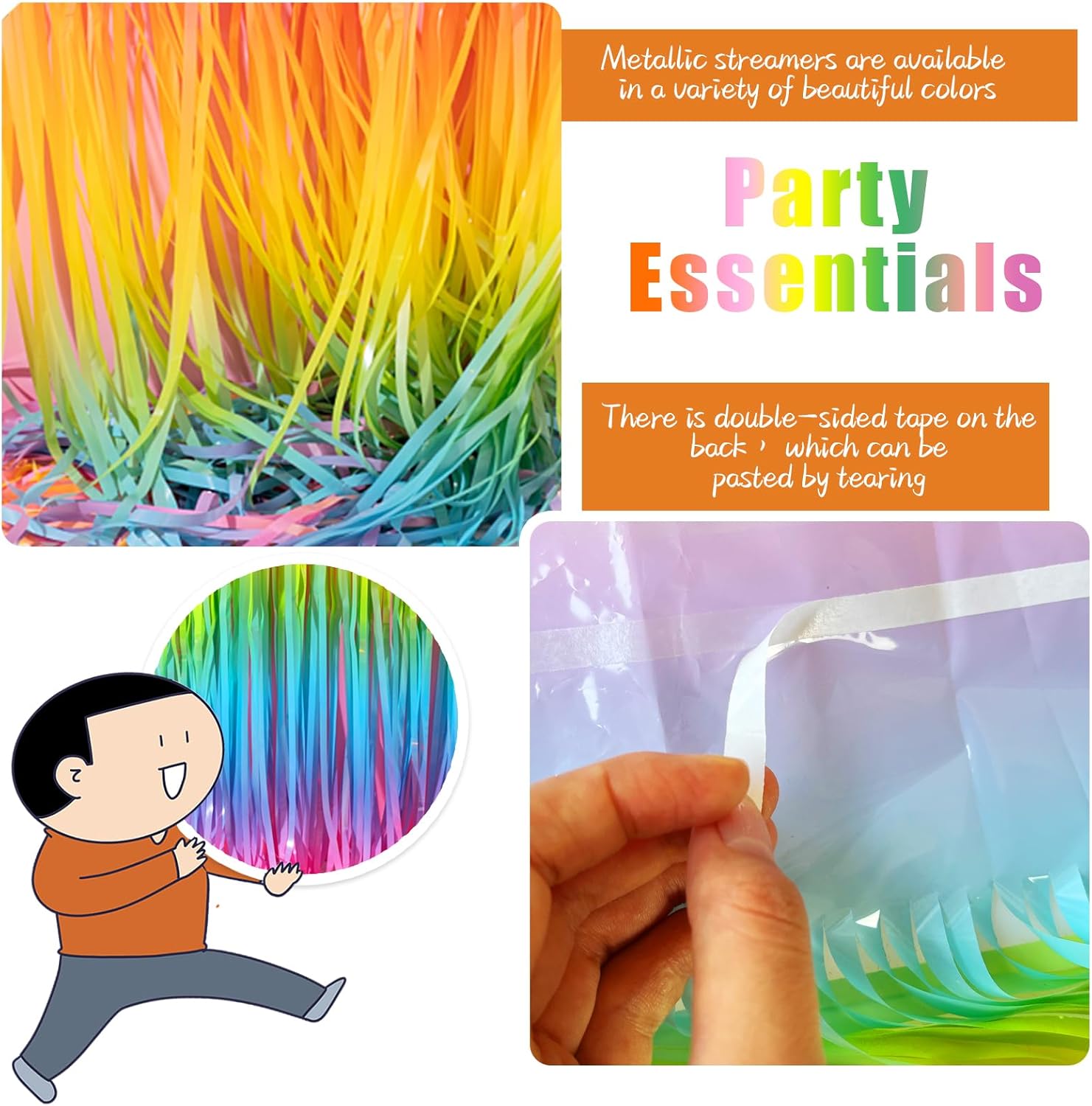 • Pastel Easter Decorations:The back of fringe curtain has double-sided tape, which can be stuck very firmly to any place you want such as walls, tables, door frames. You can use scissors to cut the length you want, and you can use two or more pieces of the curtain to splice and overlap.