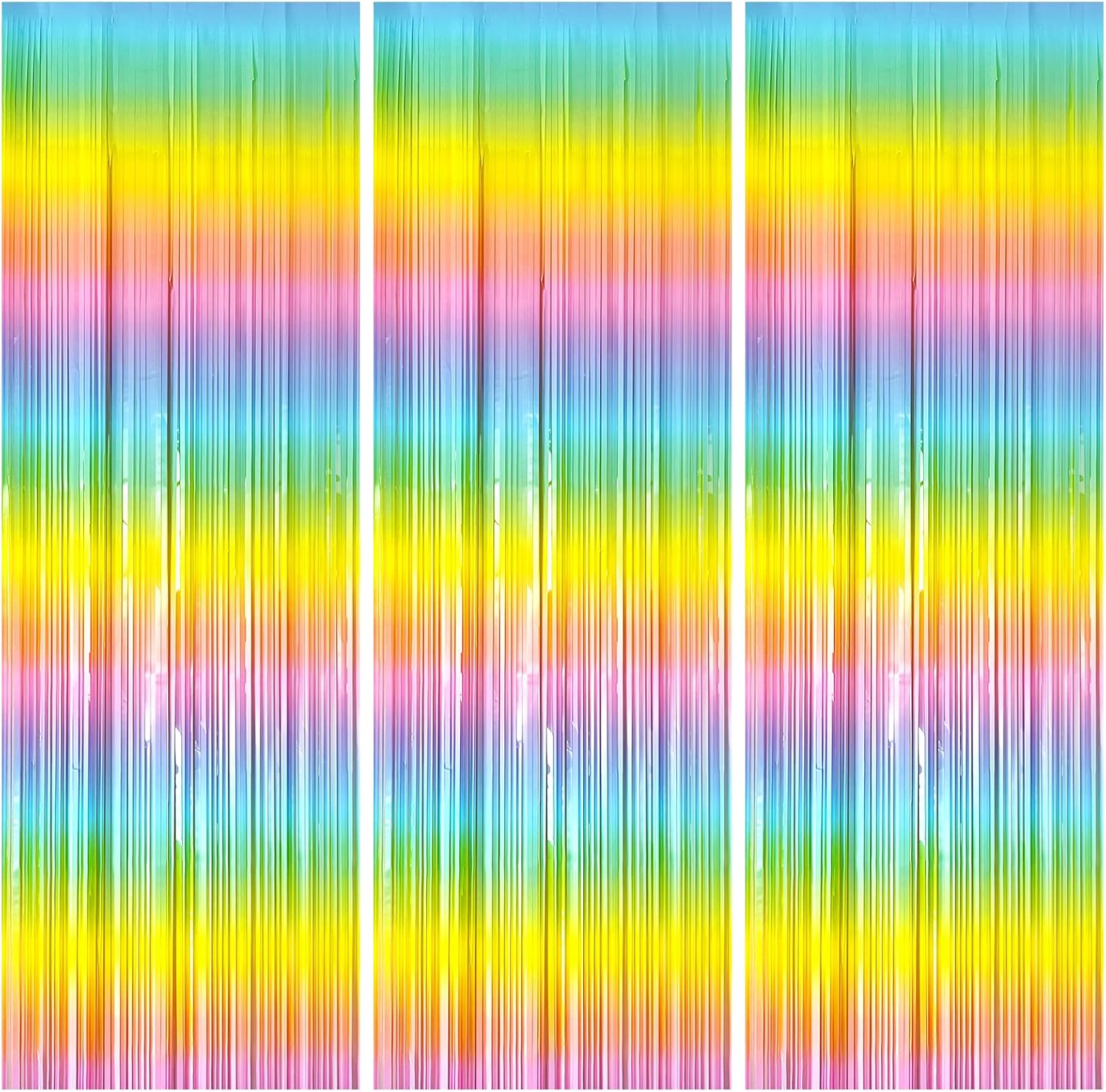 3 Pack Backdrop Pastel Rainbow Foil Fringe Backdrop Curtains Dance Party Decorations Photo Booth Props for Bachelorette Easter Decorations Christmas Halloween New Years Eve Party Supplies