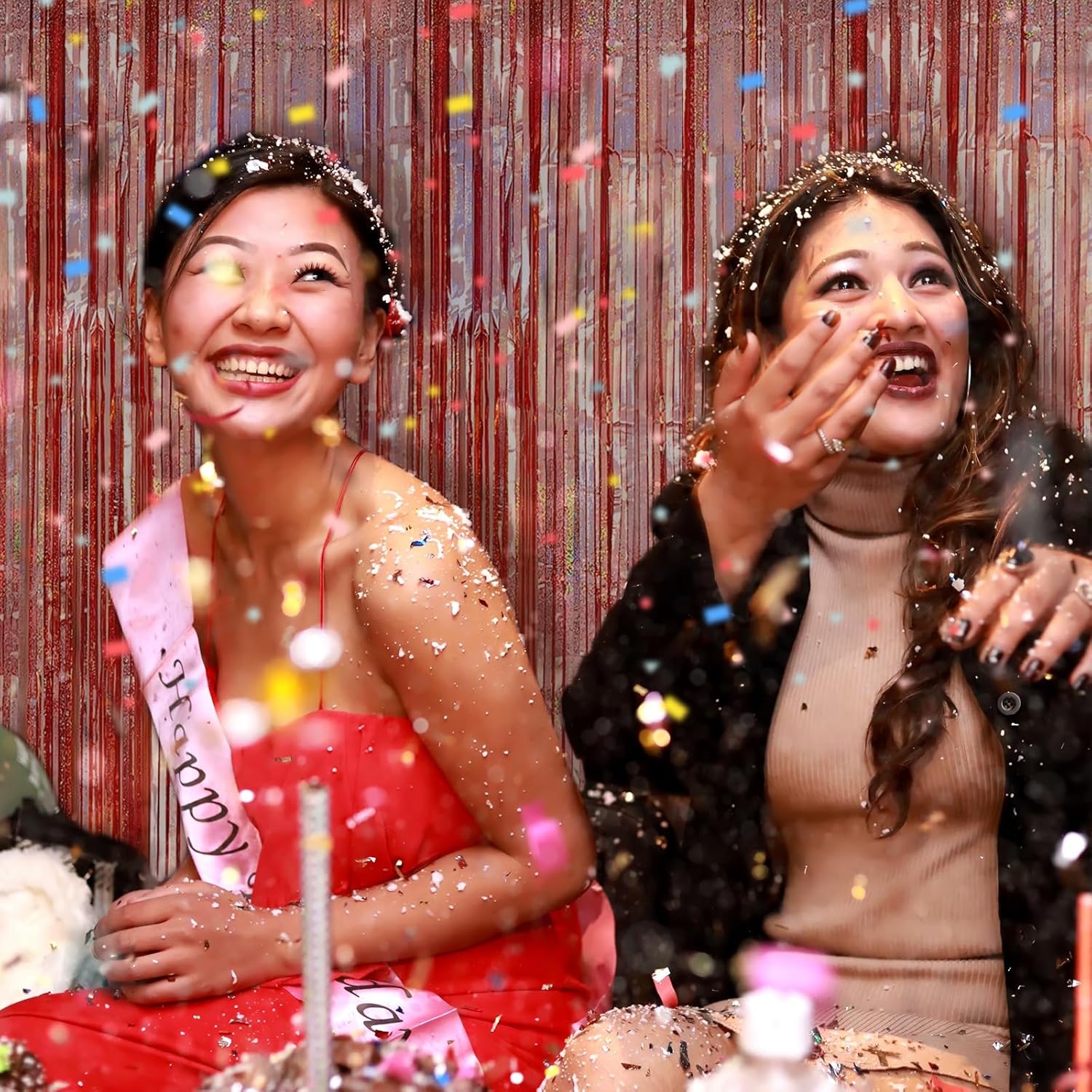 • Material:This foil curtain backdrop is made of tinsel. Metallic streamers are available in a variety of beautiful colors with a shiny and reflective surface that creates an eye-catching and mesmerizing effect. Unfold it and then enjoy your glittering party.