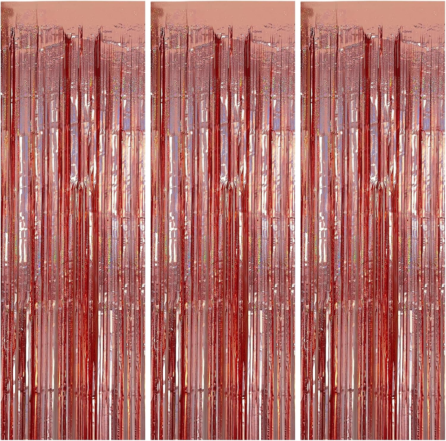 3 Pack Rose Gold Fringe Curtain Backdrop Birthday Bachelorette Party Decorations Metallic Tinsel Streamers Foil Backdrop Christmas Graduation Wedding New Year Party Decorations
