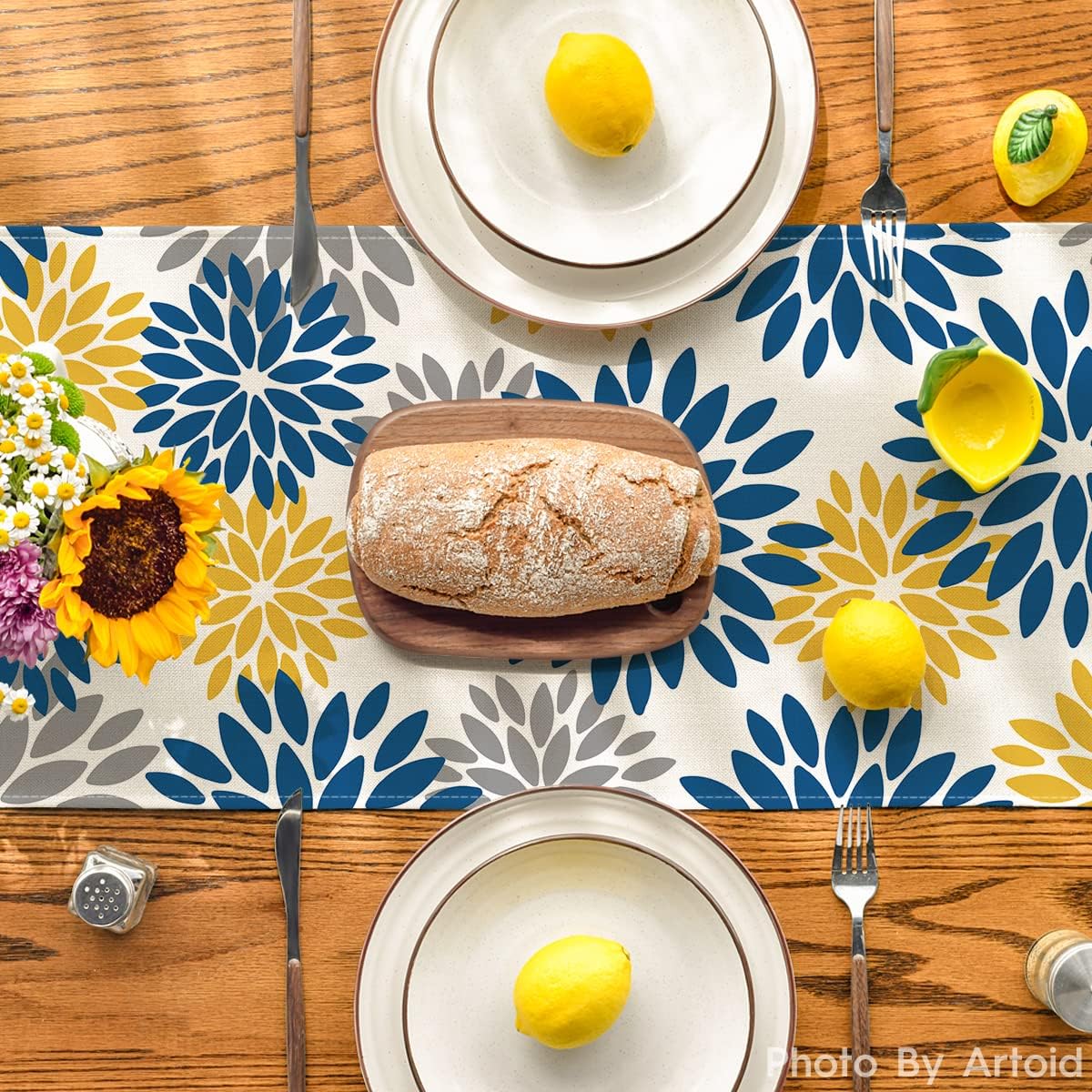 Artoid Mode Blue Dahlia Floral Pinnata Summer Table Runner, Spring Kitchen Dining Table Decoration for Home Party Decor 13x48 Inch