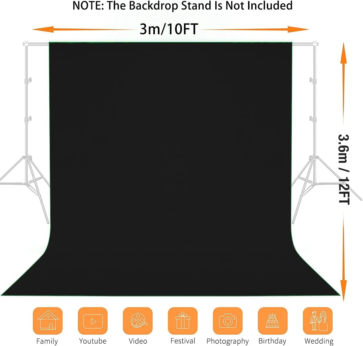 • 【PACKAGE CONTENTS & SUPPORT】1 × Black Backdrop (3.6 × 3 m / 12 × 10 ft), 1 × Operating Manual. 24/7 Customer Support: contact us for any questions or concerns - we guarantee professional assistance to resolve your issues promptly